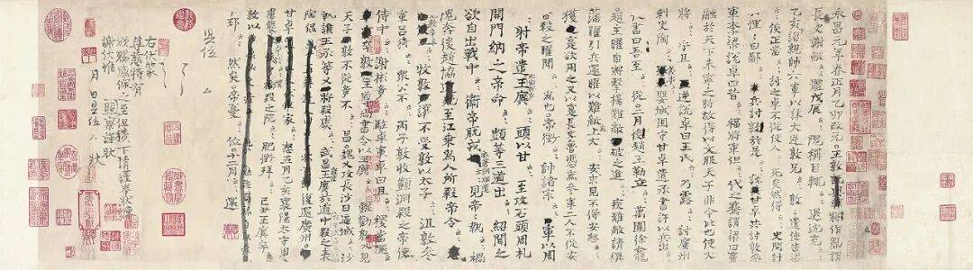 靖康之乱后,北宋内府庋藏尽散,《资治通鉴》书稿亦损毁遗失,所剩无几。《通鉴稿》在南宋以后备受珍视,历经宫廷和众多官员、著名学者或藏书家递藏,流传有秩,留下众多名家题跋,钤印琳琅。据题跋、钤印或文献记载,《通鉴稿》较早的收藏者是南宋赵汝述,之后入藏南宋内府或翰林院,嘉定八年(1215年)十二月十四日,任希夷在翰林院轮值夜班时赏阅,并留下题跋。大约在嘉定十七年至绍定元年(1224年—1228年)之间,葛洪、程珌、赵崇龢三人同观此卷,题写观跋。南宋末年,《通鉴稿》流入民间,几经辗转,至清乾隆年间,入藏清内府御书房。乾隆御笔题签,并钤“乾隆鉴赏”“宜子孙”等。