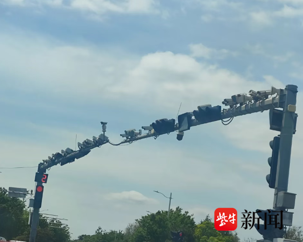 扬子晚报网4月26日讯(记者 郭一鹏) 近日,有网友在社交平台发帖称,在青岛市城阳区一处路口,两根横杆上装了至少十几个摄像头。