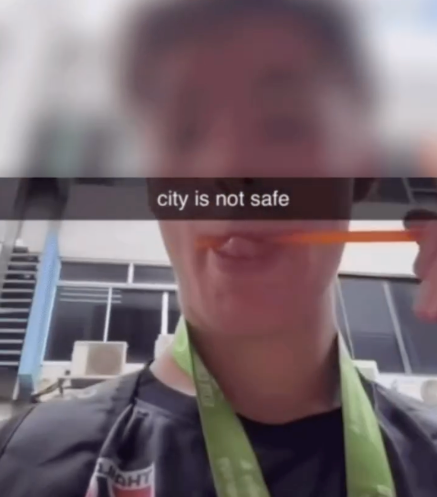 视频画面显示,他不仅记录了自己舔舐吸管并塞回机器的举动,还特意在画面上配了一句“城市不安全(city is not safe)”的字幕。这段视频随后在网络上被广泛转发,引发了网友的强烈反感和谴责。