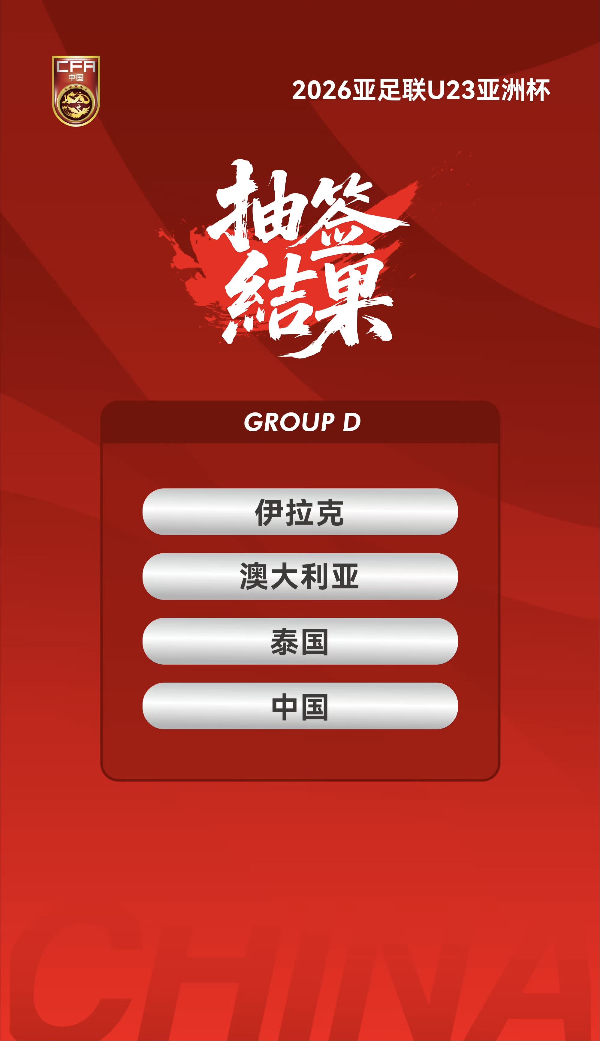 U23亚洲杯赛程出炉,中国队首战伊拉克