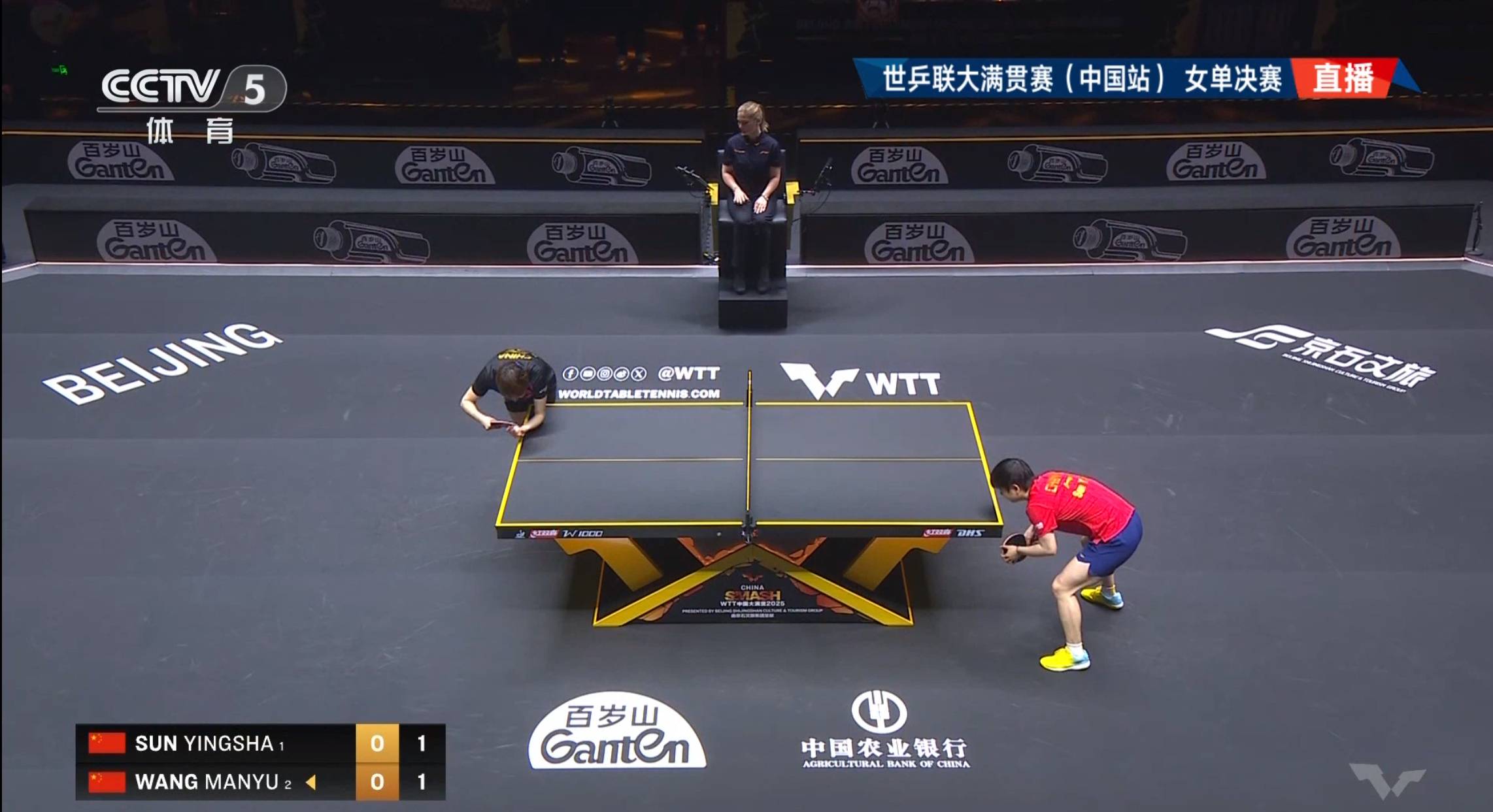 WTT中国大满贯女单决赛,王曼昱战胜孙颖莎,夺得冠军。
