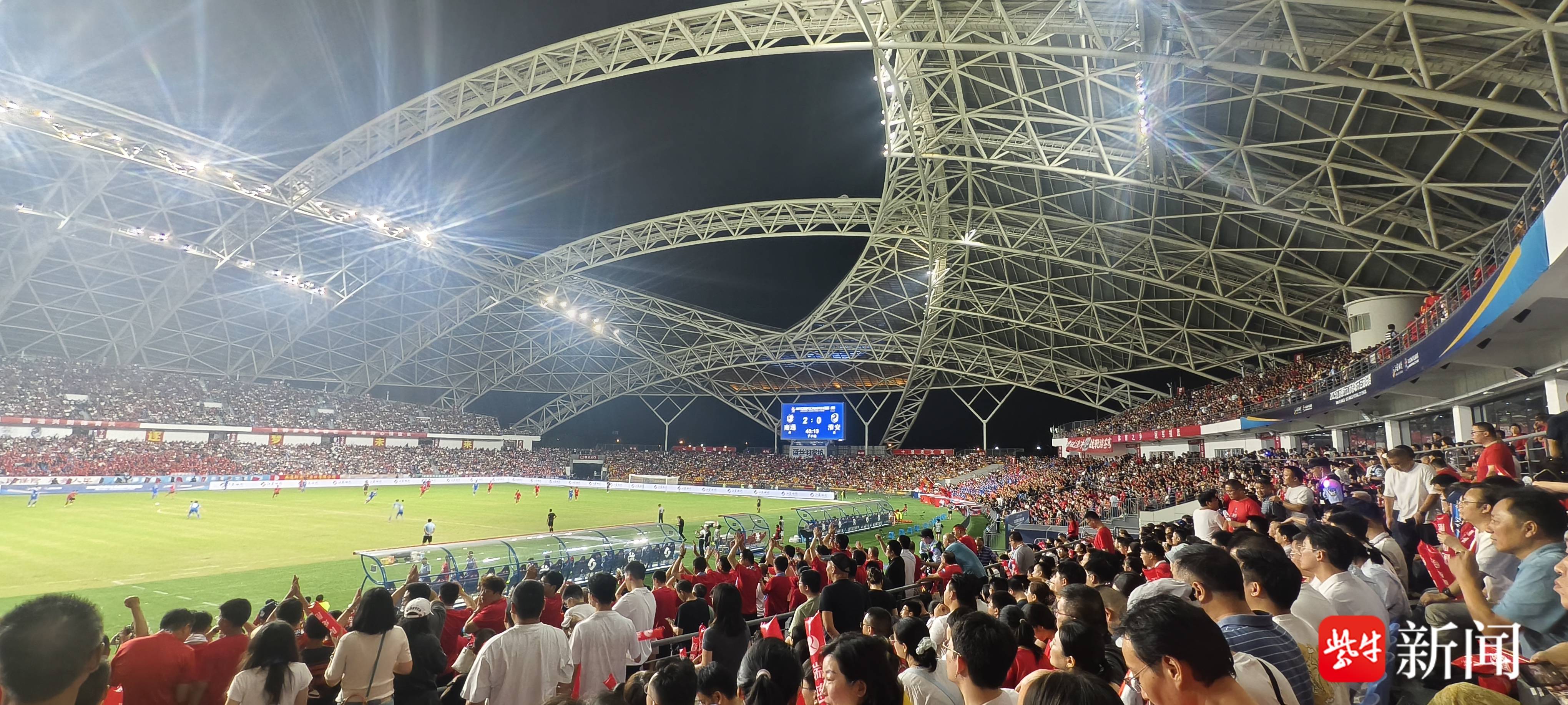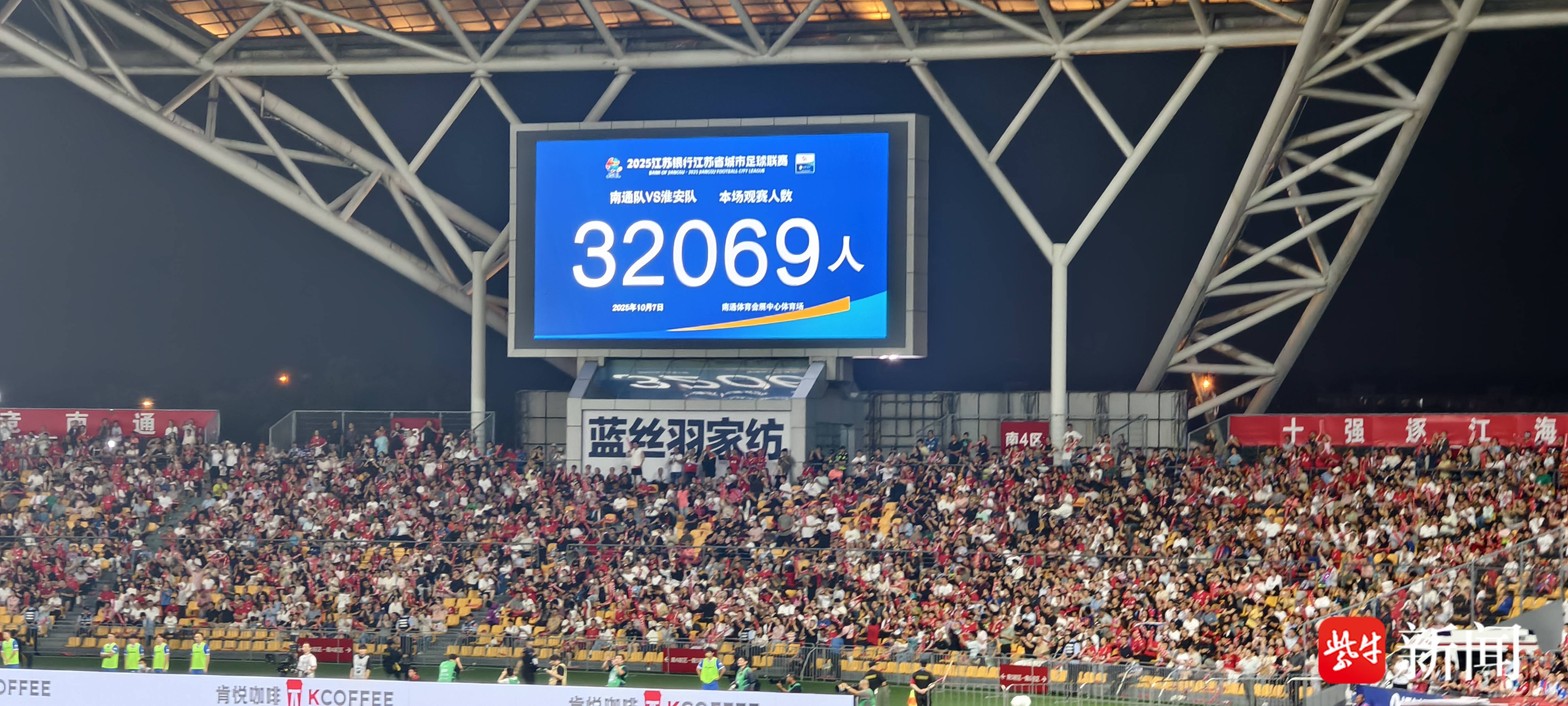 扬子晚报讯(记者 朱亚运 吴佳笑)10月7日晚,万众瞩目的“苏超”四分之一决赛“重头戏”,南通队对阵淮安队的比赛在南通体育会展中心打响。在现场32069名观众见证下,南通队5:0大胜淮安队,成功晋级“苏超”四强,再次用实力证明“榜一大哥”无可争议,同时也创造了淘汰赛以来的最大分差。值得一提的,本场比赛在CCTV5频道全程直播,也证明了这场绿茵对决的空前关注度。