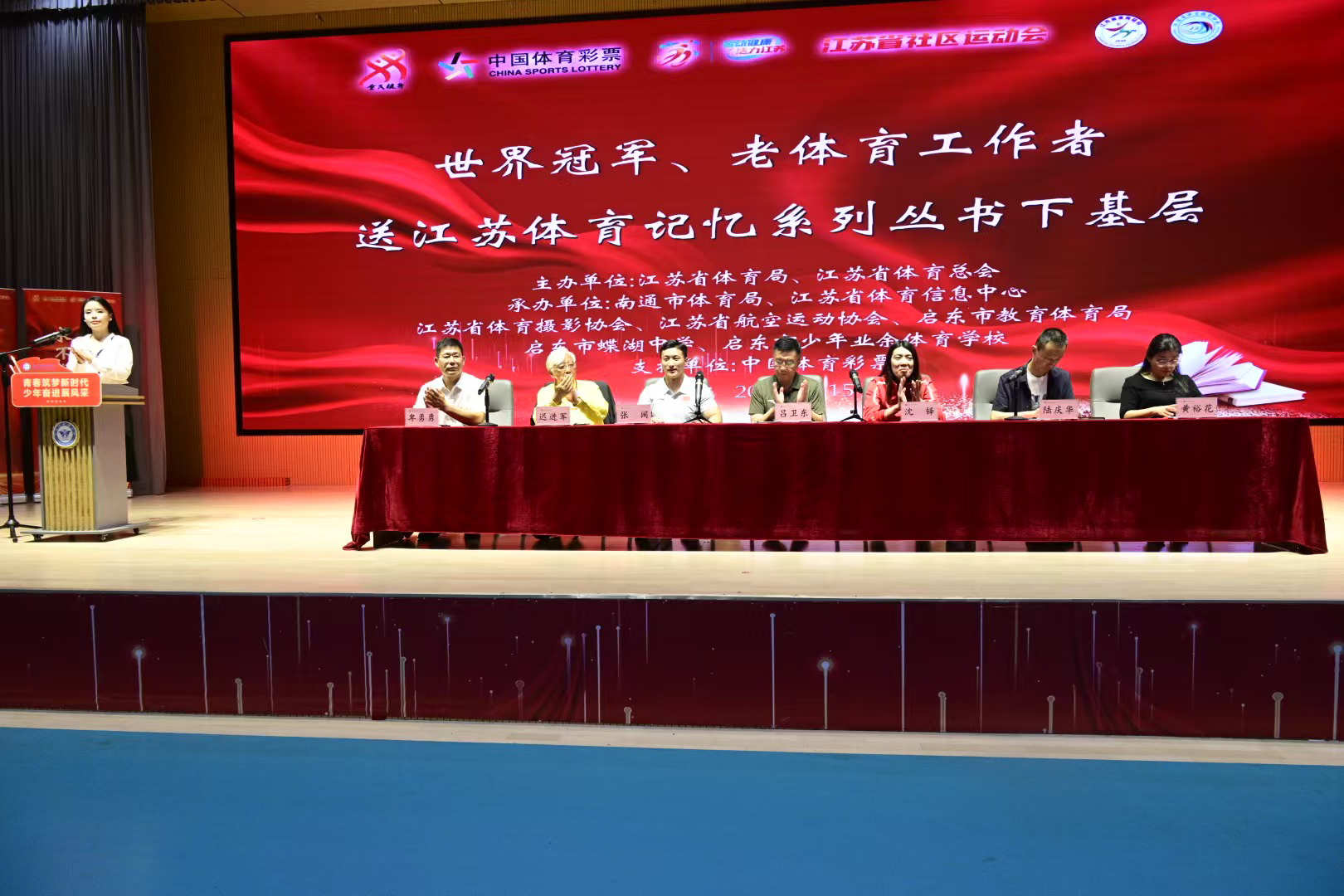 10月15日,世界冠军、老体育工作者送江苏体育记忆系列丛书下基层活动年度最后一站来到启东。来自启东市蝶湖中学和启东市少年业余体育学校共600名学生参加了本次活动。活动由江苏省体育局、江苏省体育总会主办,江苏省体育文化中心、江苏省体育摄影协会、江苏省航空运动协会和南通市体育局、启东市教育体育局承办。