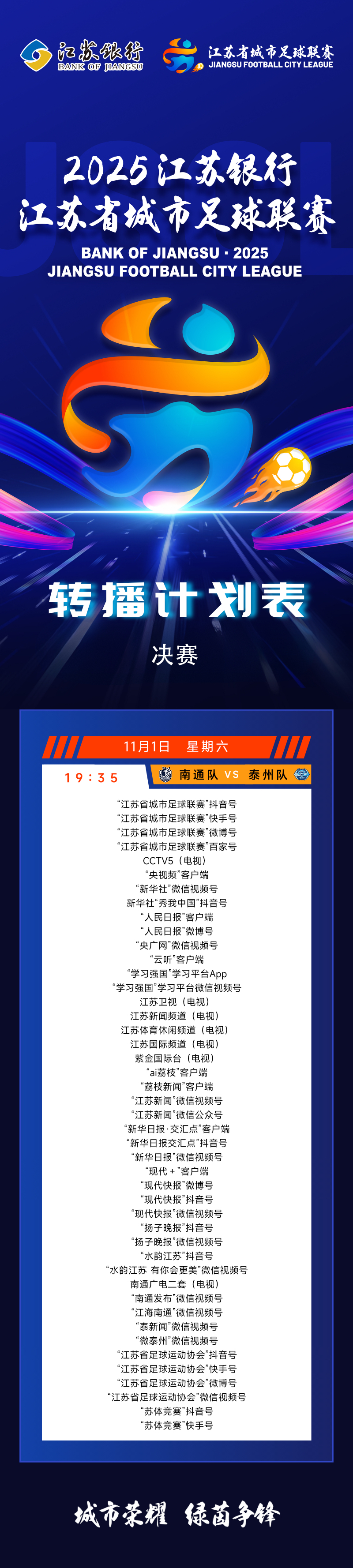 是南通队延续不败神话,以赛季不败的完美战绩登顶?还是泰州队一黑到底,书写从“小透明”到冠军的传奇?11月1日的南京奥体中心,答案即将揭晓。但无论最终结果如何,这场足球盛宴都已注定刻进江苏足球的发展史册,成为所有球迷心中一段滚烫的记忆。