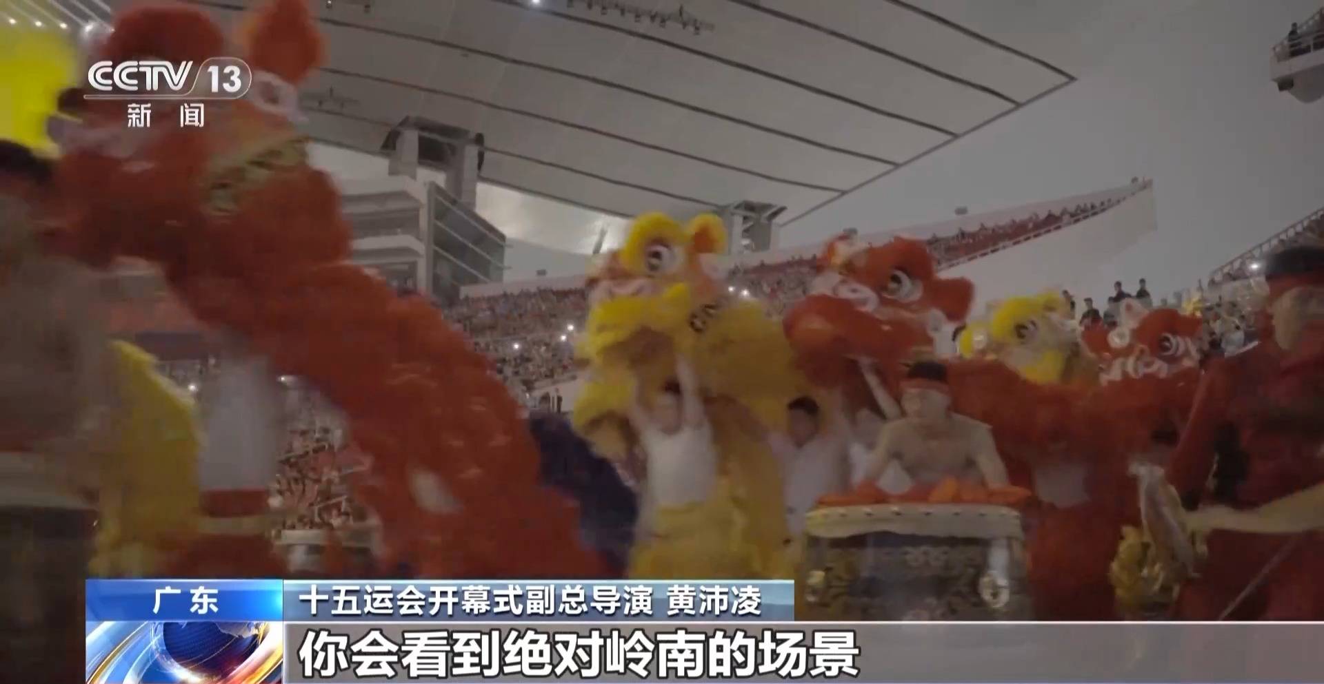 十五运会开幕式副总导演 黄沛凌:岭南元素作为我们的核心表达,你会看到绝对岭南的这个场景,岭南的花窗、芭蕉叶,包括灯笼等图案元素,希望通过既岭南又动感的场景来演绎整个内容。
