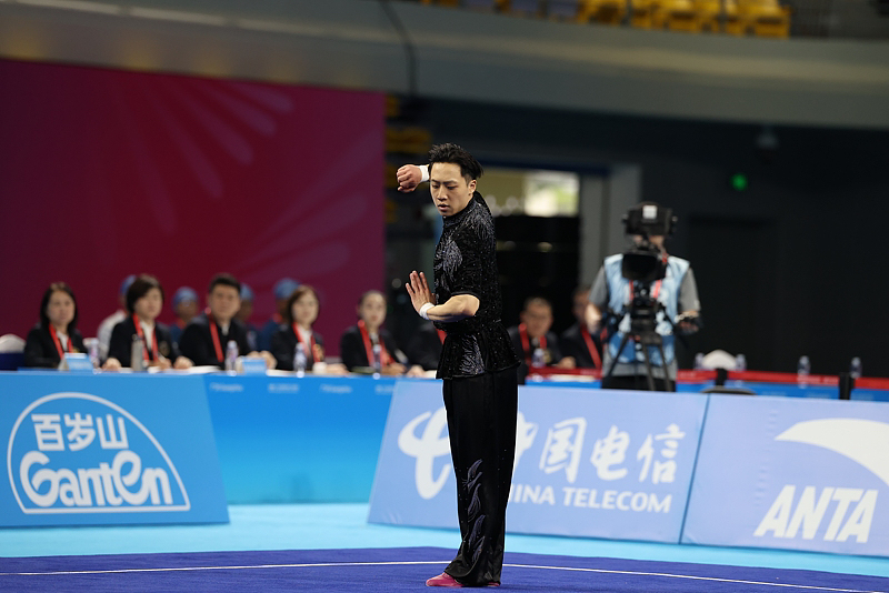 十五届全运会男子长拳刀术棍术全能项目需进行三轮比拼。在上午进行的长拳比拼中,他以一套规整流畅、攻防特点突出的动作征服全场,以9.83分排名领先;下午进行的刀术比赛,他再次以稳定优异表现拿下9.83分的高分,进一步巩固领先地位;晚间进行的棍术比赛中,他用刚柔相济、势如破竹的流畅技法拿到9.83分,并最终以总分29.49分,力压竞争对手夺得冠军。