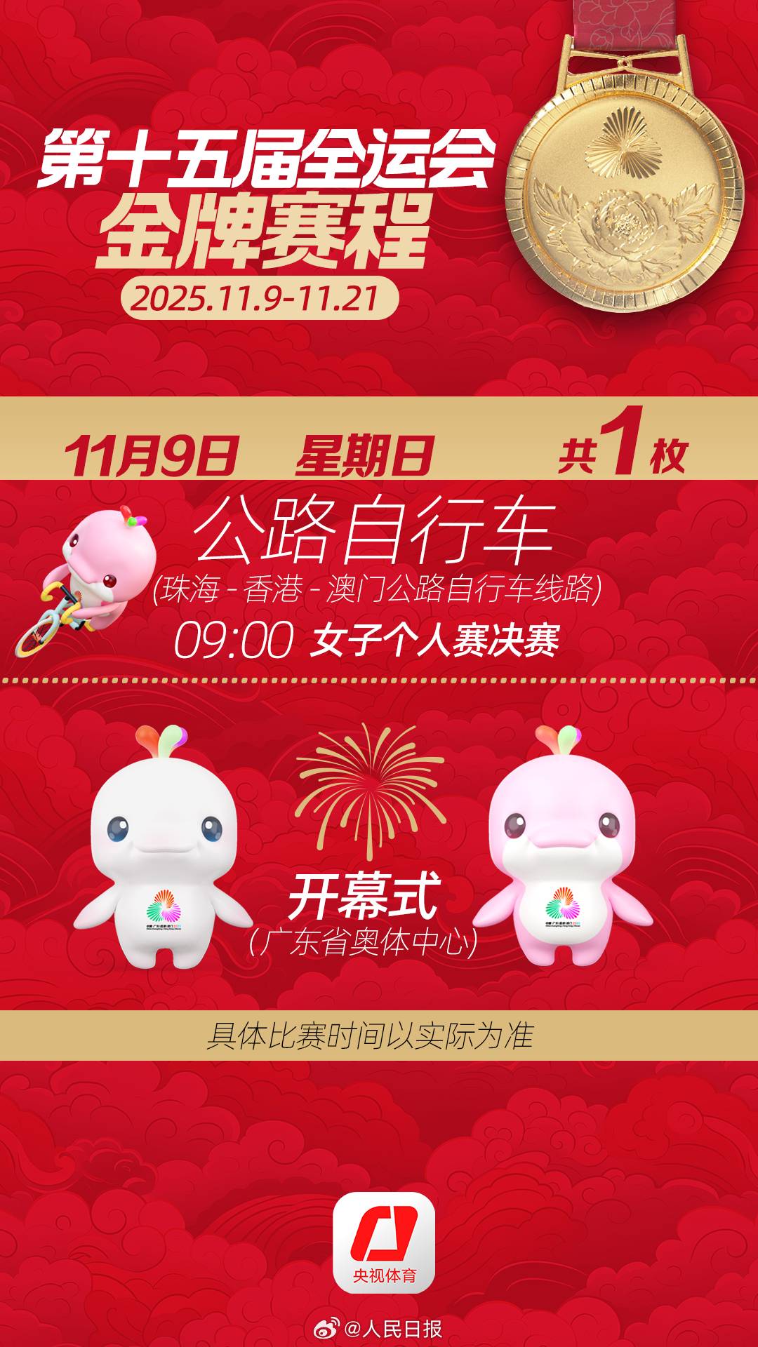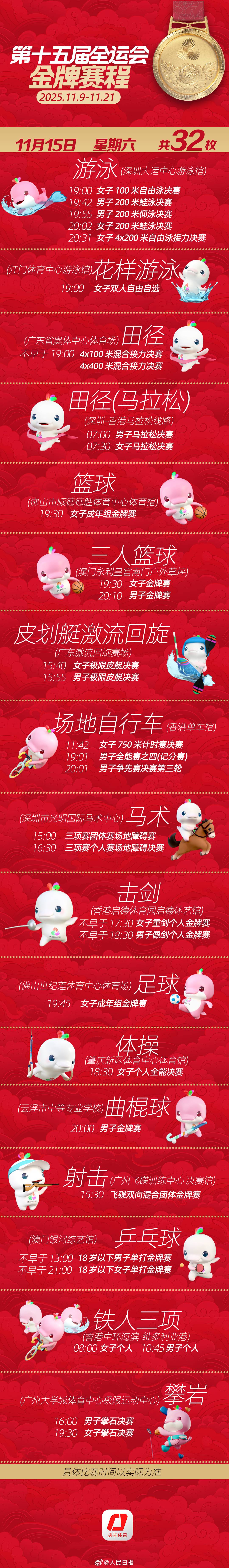 第十五届全运会开幕式将于明日举行。收藏十五运会金牌赛程,一起看全运会。