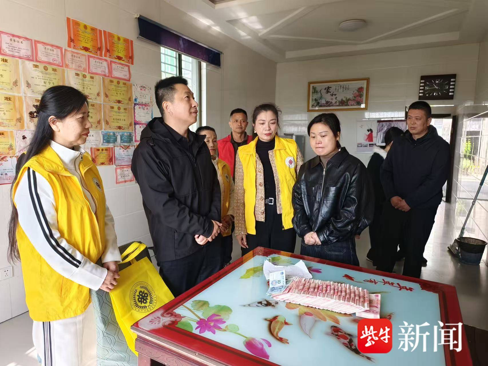 如意慈善志愿者将善款送到万子立妈妈手中