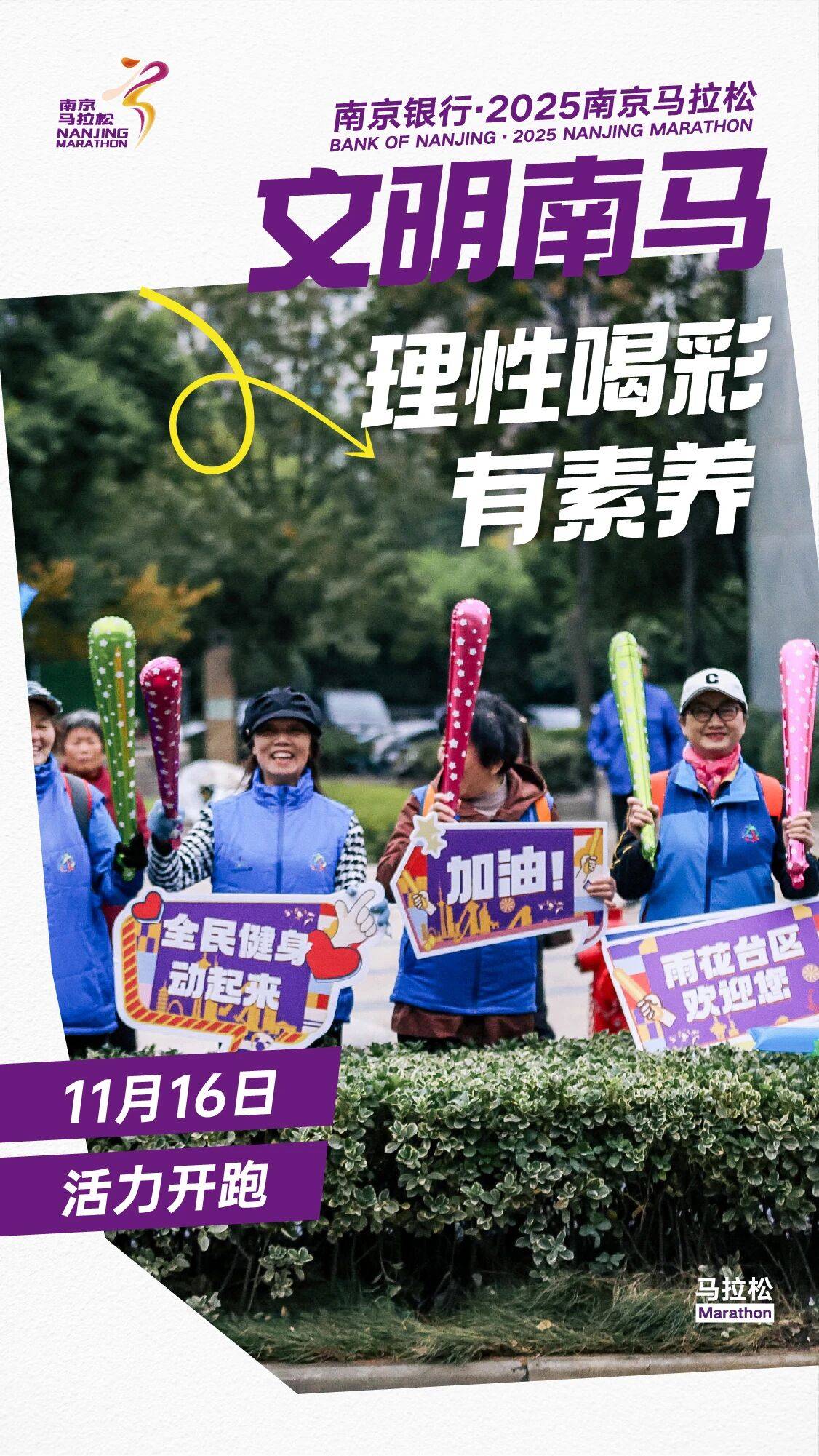 南京马拉松的顺利举办离不开大家的支持与配合,期待与您相约金秋南京,携手共创文明南马,为这场赛事增添温暖与美好!