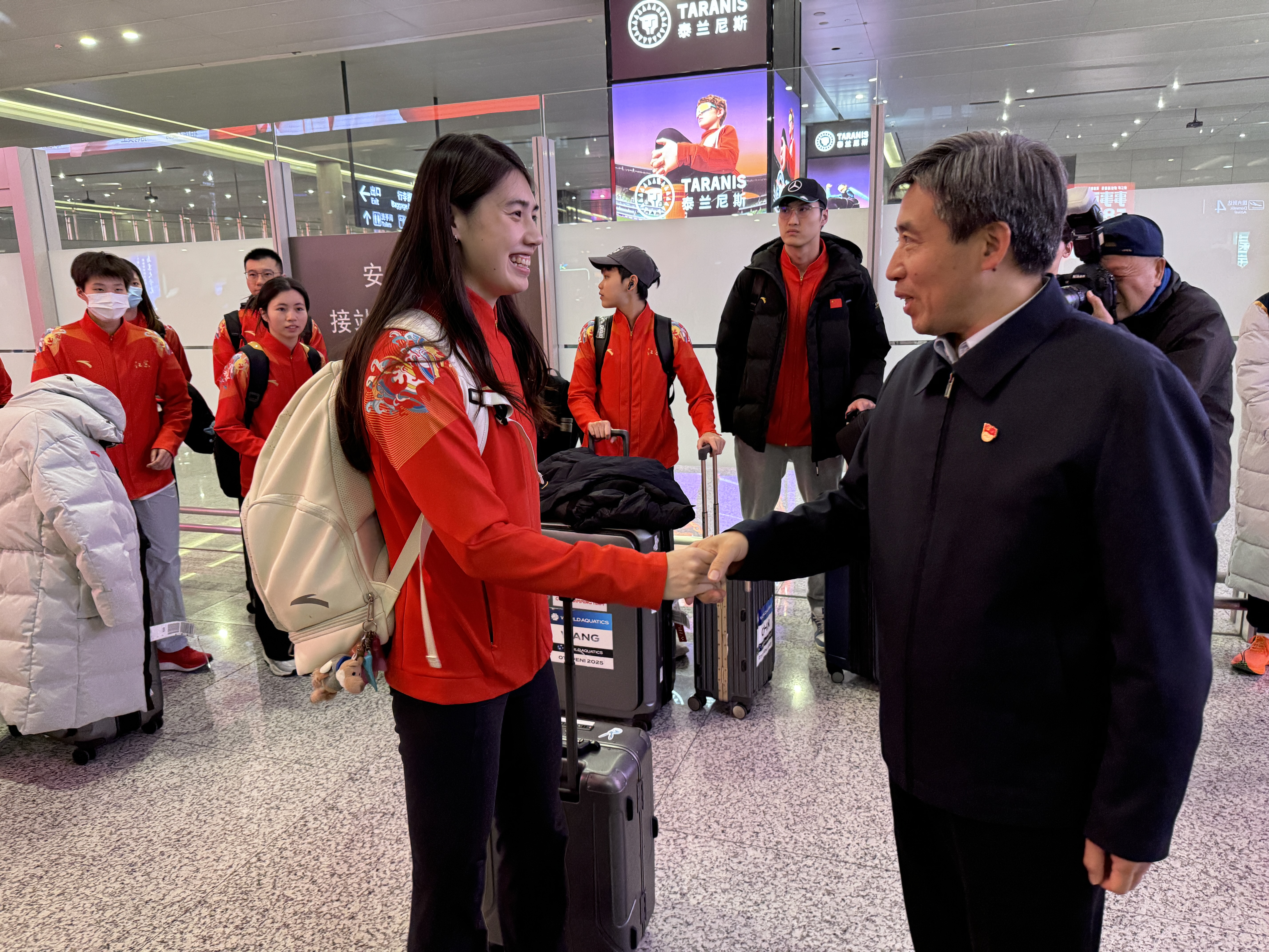 接机现场,面对守候已久的热情粉丝,女子100米、50米蝶泳“双冠王”张雨霏脸上绽放出明媚笑容。她频频挥手致意,不时停下脚步与粉丝亲切互动,现场洋溢着温馨融洽的氛围。