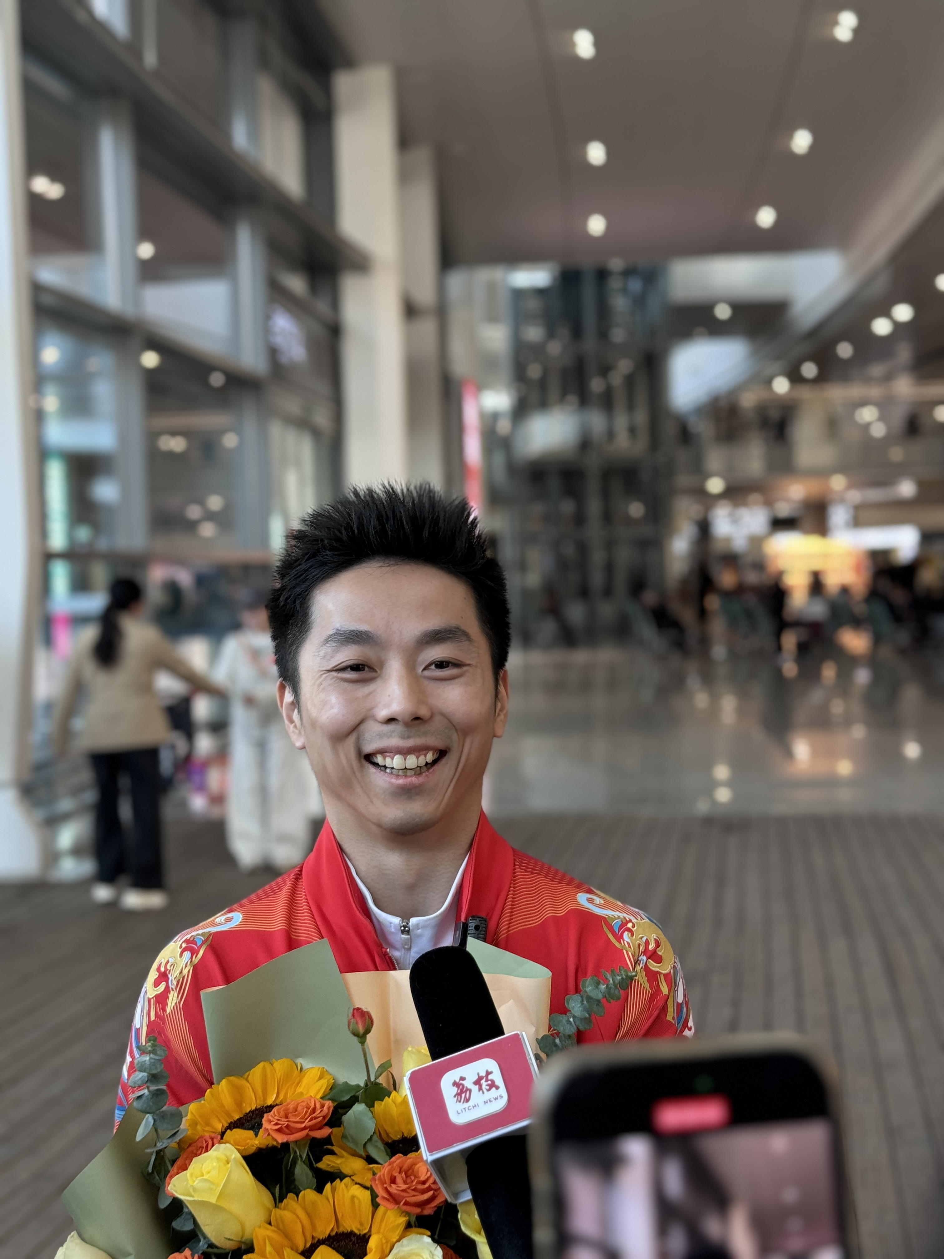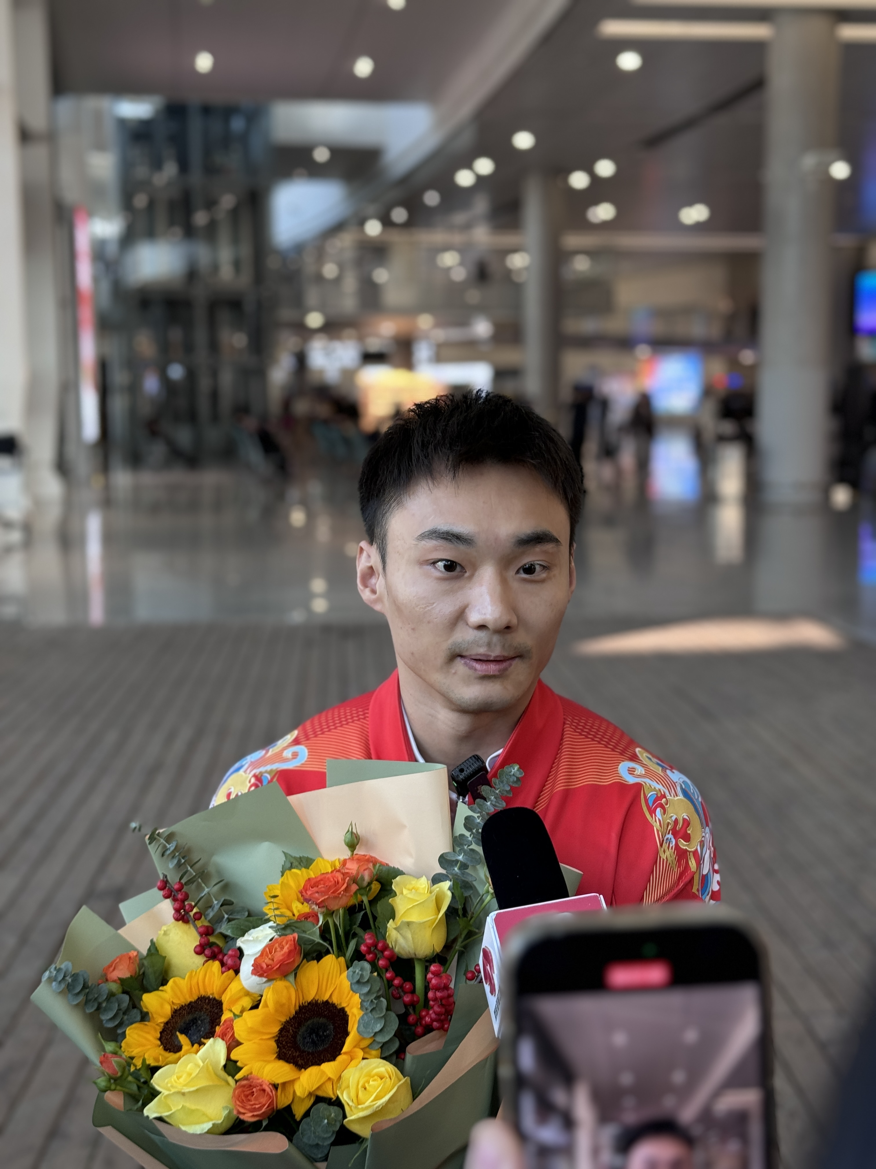 “心情很激动,这枚金牌来之不易,感觉像我拿下世界冠军一样激动!”在禄口机场的接机大厅,手捧鲜花的孙炜激动之情溢于言表。33岁老将尤浩则显得更加沉稳,“挺开心的,我们发挥出了各自应有的水平,也比出了团队的气势。”