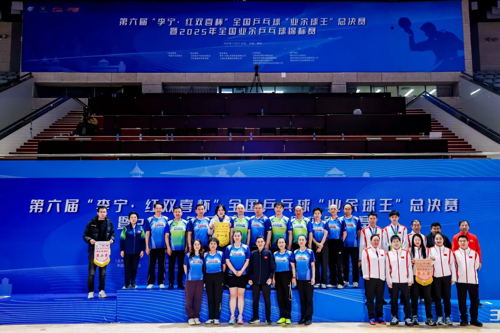 11月30日晚,为期四天的第六届“李宁·红双喜杯”全国乒乓球“业余球王”总决赛暨2025年全国业余乒乓球锦标赛在扬州体育公园体育馆落下帷幕。来自全国26个省份及直辖市的68支代表队、近千名乒乓健儿同台竞技,在抖音、快手、视频号等平台超4000万观众的见证下,各组别“球王”悉数诞生,赛事以竞技与温情交织的圆满结局,为全国业余乒乓爱好者献上一场巅峰盛宴。