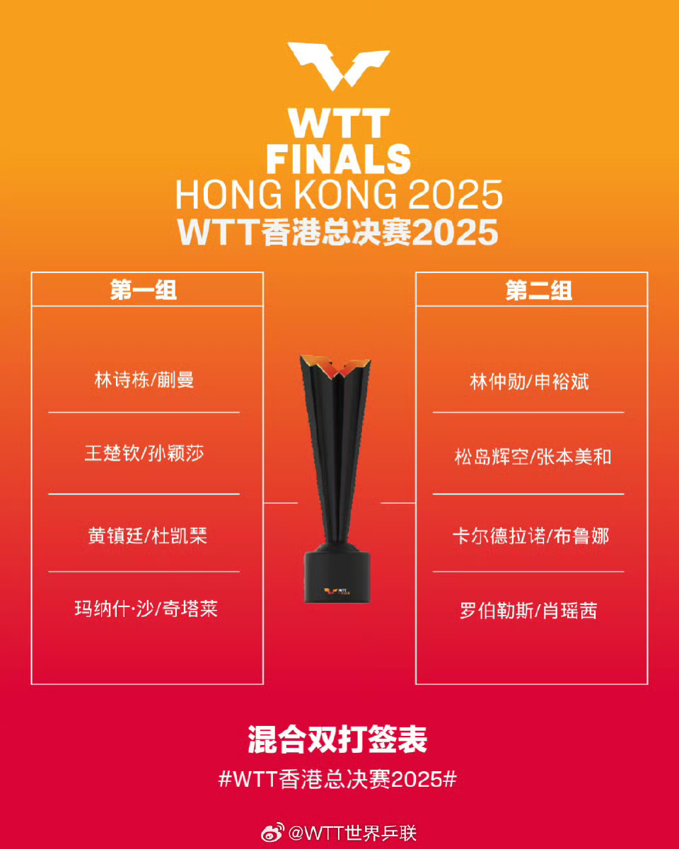 WTT香港总决赛|国乒首轮遭遇多场“内战” 两对混双同组竞争