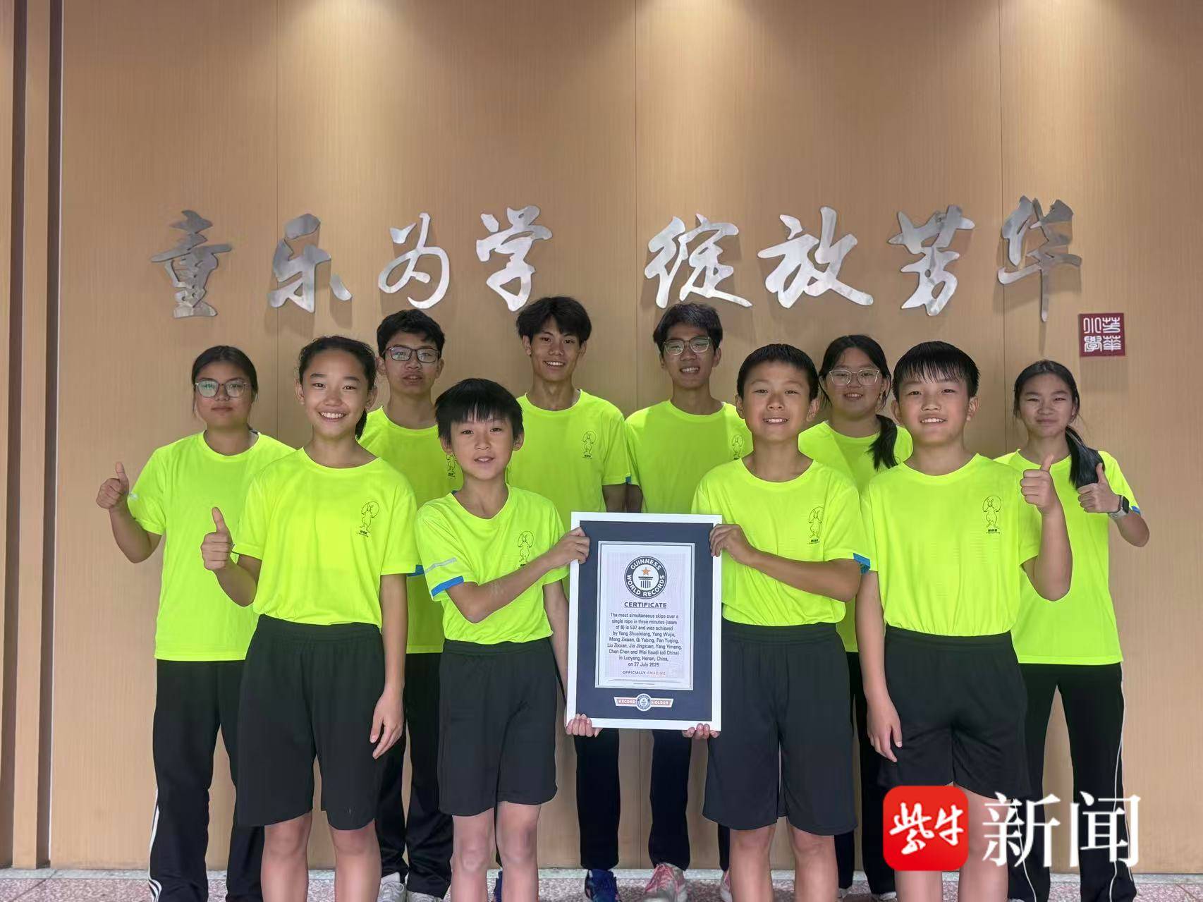 扬子晚报网12月12日讯(记者 姜天圣)近日,河南省洛阳市涧西区一支由十名少年组成的跳绳队,收获属于团队的纪录证书——他们以537次的成绩创造“3分钟内8人一组跳同一根绳次数最多”吉尼斯世界纪录。这支年轻的队伍由八名跳绳队员和两名摇绳队员组成,成员年龄在11至17岁之间。他们分别是跳绳队员11岁的陈宸和杨沂蒙、12岁的卫浩迪和贾靖萱、16岁的孟子轩、潘玉晴、杨武杰,以及17岁的齐亚兵;摇绳队员13岁的刘子轩和16岁的杨帅祥。