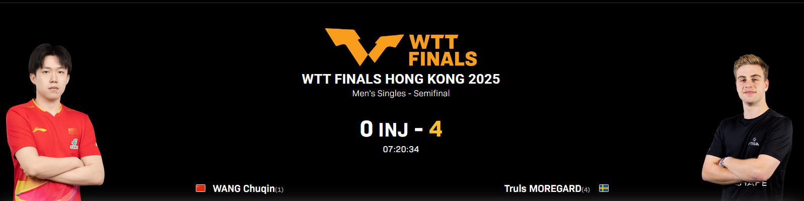 WTT香港总决赛男单半决赛:王楚钦因伤退赛