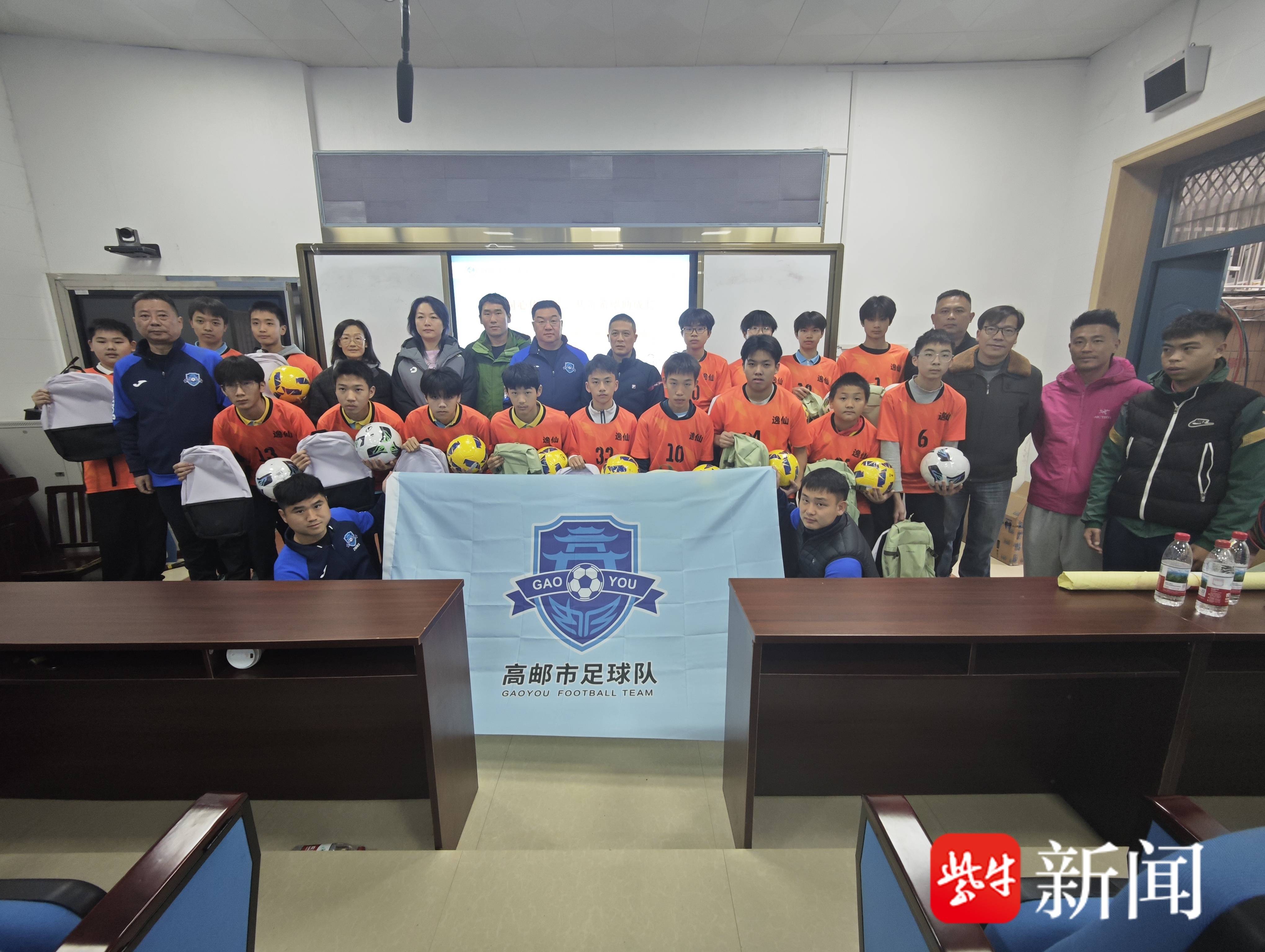 12月22日,在结束了2025年“全民健身 健康中国”全国县域足球冠军赛比赛任务的扬州高邮队的部分队员和教练员利用赛事间隙,走进了桂林市的足球特色学校逸仙中学,球队领队汤小荣代表高邮市足协向逸仙中学校足球队赠送了足球装备,而高邮队中的几名参加“扬超”联赛的球员还和逸仙中学校足球队进行了比赛互动。