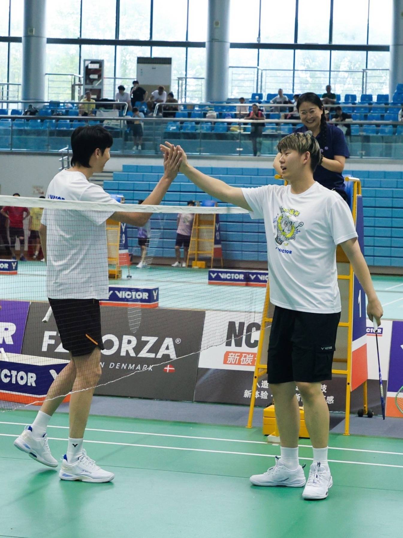 今年,郑思维和黄雅琼还现身厦门苏杯和杭州总决赛现场,从更多维度参与赛事,以新角色为家门口的羽球盛宴带去更多精彩。郑思维担任总决赛的赛事体验官,给参赛选手送上江浙名点定胜糕以及VICTOR定胜糕款甜点萌羽挂件。黄雅琼则全程参与了央视的赛事转播,专业而风趣的解说收获好评。