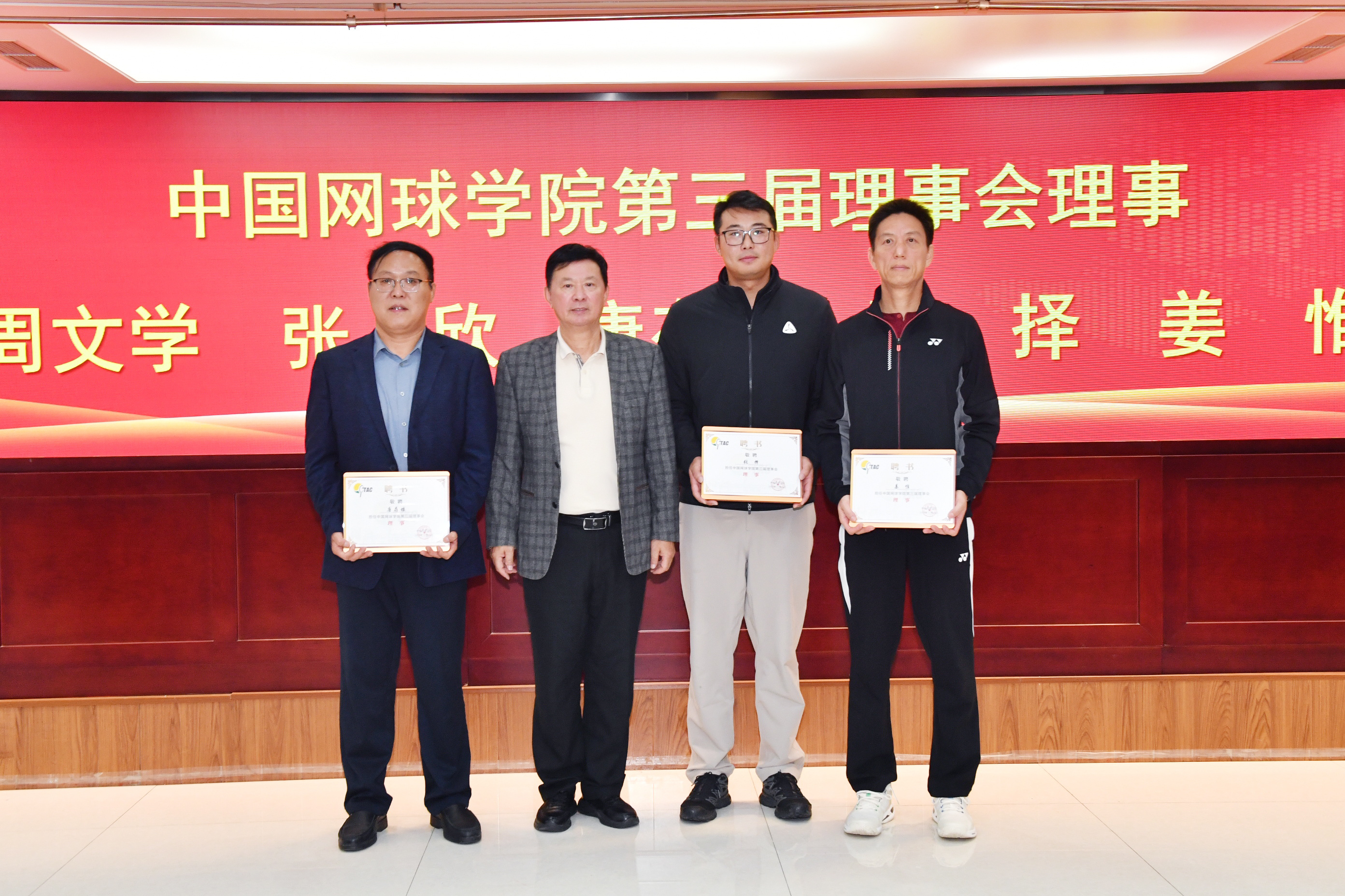 大会审议并通过了中国网球学院理事会工作报告、中国网球学院第三个五年发展规划、第三届理事会建议名单以及中国网球学院院长建议名单。会上,白喜林为中国网球学院第三届理事会理事长吴兵成、中国网球学院院长蒋宏伟分别颁发了聘书;吴兵成为中国网球学院第三届理事会顾问白喜林、刘红明,副理事长许秋红、刘健、蒋宏伟分别颁发了聘书;中国网球学院院长蒋宏伟为各理事单位和理事颁发了聘书。
