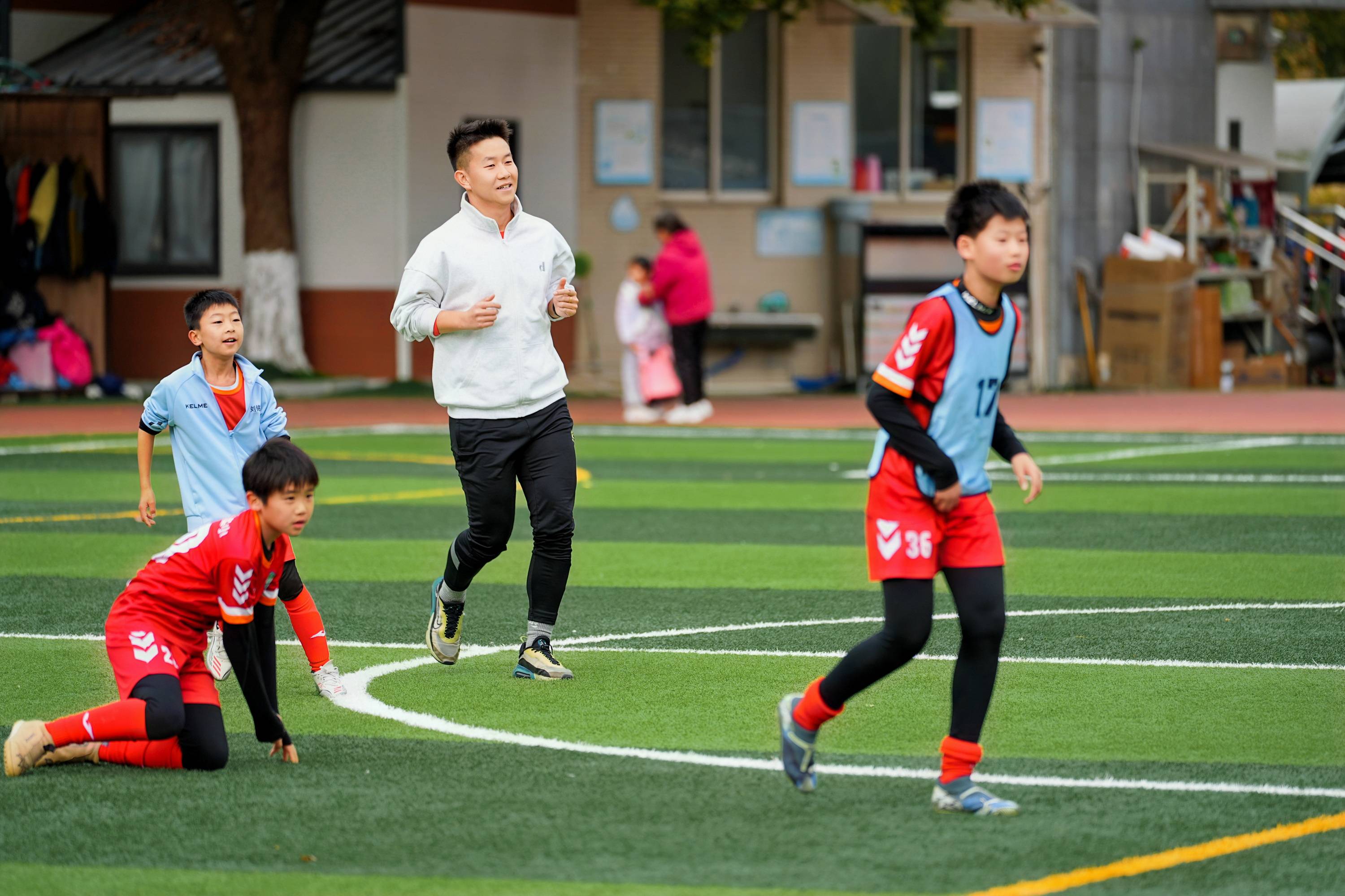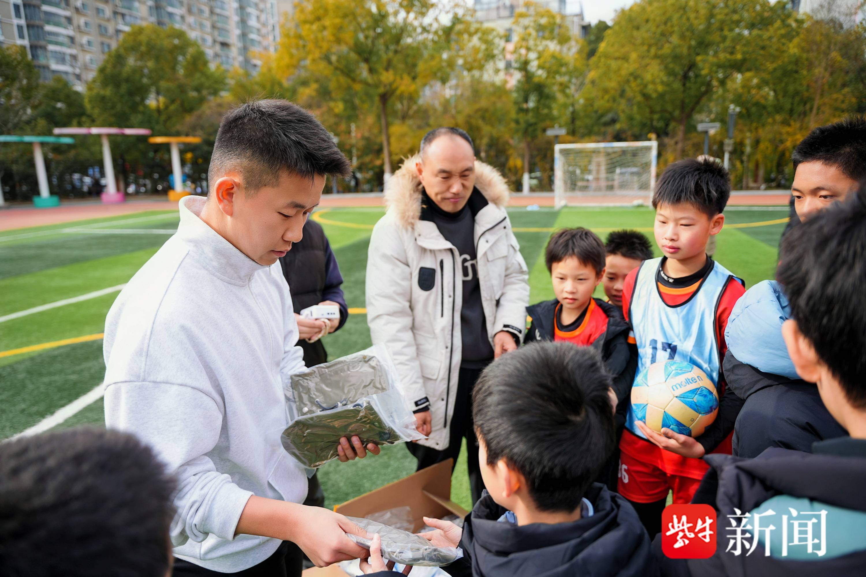 活动还特别邀请到来自江苏南京的足球运动员阮喆祥,与孩子们进行现场互动交流。作为近期活跃于“苏超”联赛并广受青少年瞩目的运动员,他的到来激发了孩子们对体育运动的浓厚兴趣。阮喆祥与同学们分享了日常训练心得、比赛经历以及对体育精神的理解,告诉大家团队协作的重要性,鼓励大家积极参与体育活动。