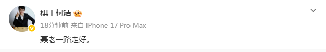著名棋手柯洁在社媒发文进行悼念:聂老一路走好。
