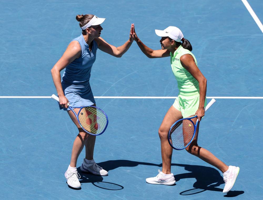 新华社墨尔本1月31日电 2026年澳大利亚网球公开赛女双决赛31日进行,中国选手张帅搭档比利时选手梅尔滕斯战胜跨国组合达尼丽娜(哈萨克斯坦)/克鲁尼奇(塞尔维亚),夺得冠军。