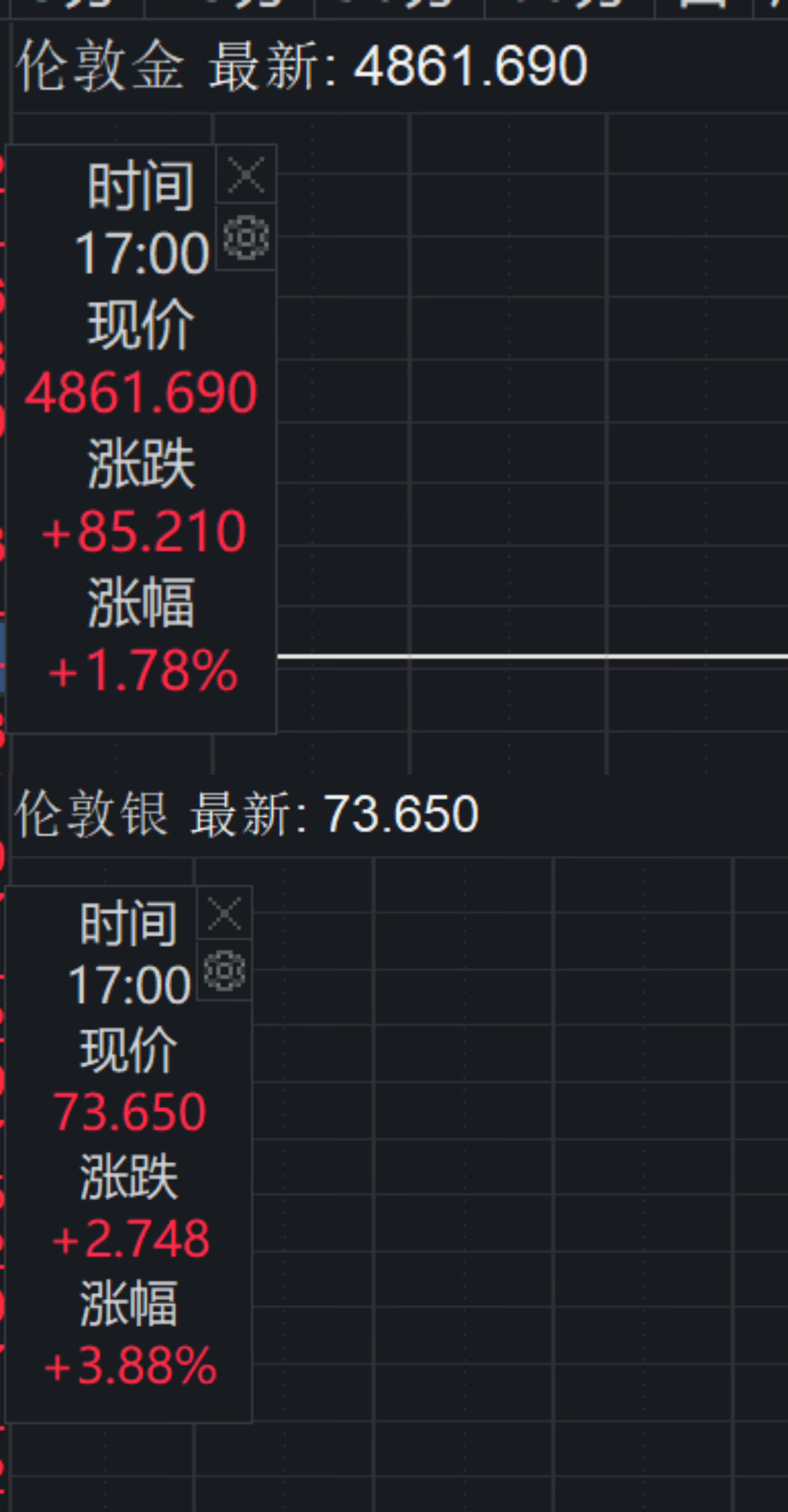 记者根据最新市场数据,北京时间6日17时左右,伦敦金现报价4861.690美元/盎司,伦敦银现报价73.650美元/盎司,同期中国外汇交易中心公布的人民币兑美元汇率中间价为1美元对6.9590元。采用贵金属交易通用的金衡盎司换算标准(1金衡盎司≈31.1035克)计算,按克金价约为1087元/克,按克银价约为16元/克。