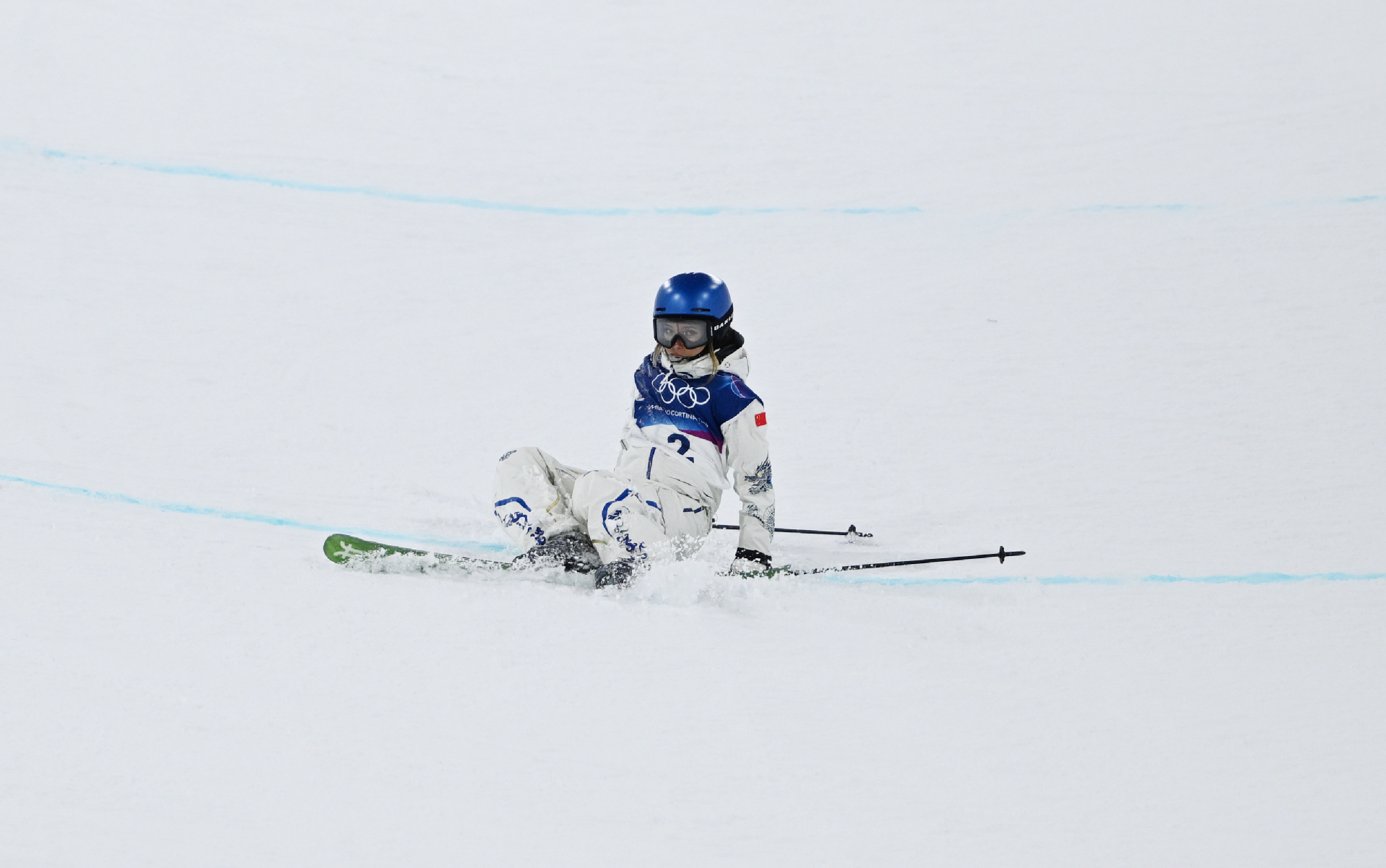 谷爱凌摔倒在赛场上。
