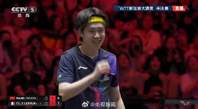 王楚钦晋级WTT新加坡大满贯男单决赛