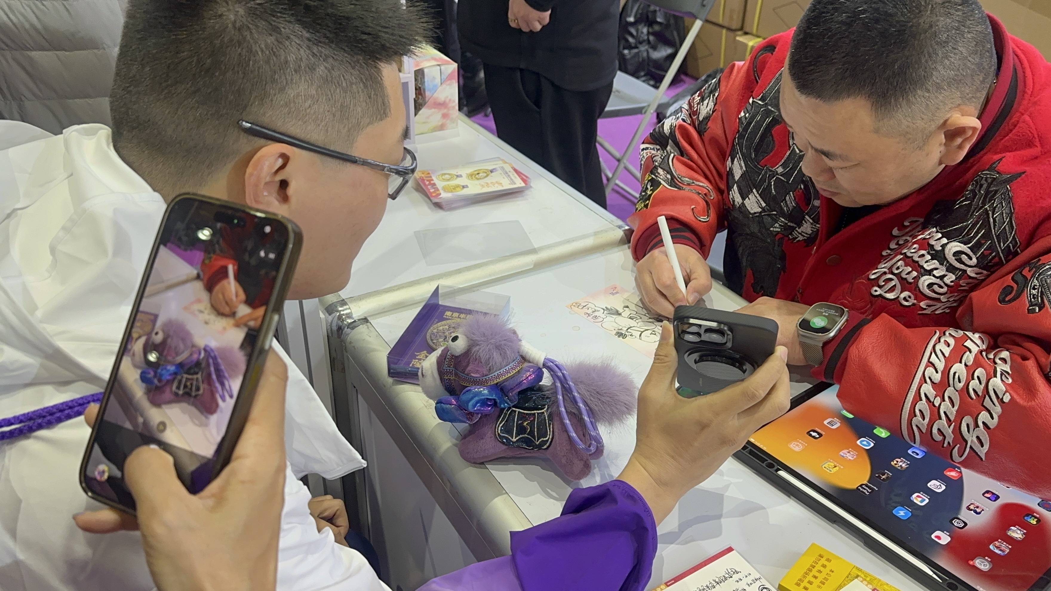 记者在现场看到,买到最后一只“马什么梅”玩偶的跑友正坐在胡松对面,静静等待着他现场手绘并写下TO签。这位跑友告诉记者,打算把玩偶和亲签一起送给参赛的朋友,祝对方这次比赛成功破二,还忍不住感叹:“这种专属的设计和祝福,简直情绪价值拉满。”而今年推出的龙形扇子、冰箱贴,更是设计师胡松目前最满意的作品,他直言实物比照片拍出来的还要好看:“完全按自己的想法创作,细节、色彩和质感都戳中了心坎。”