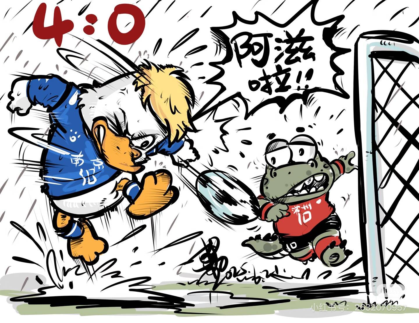 用画笔定格“苏超”中“南哥”精彩瞬间。