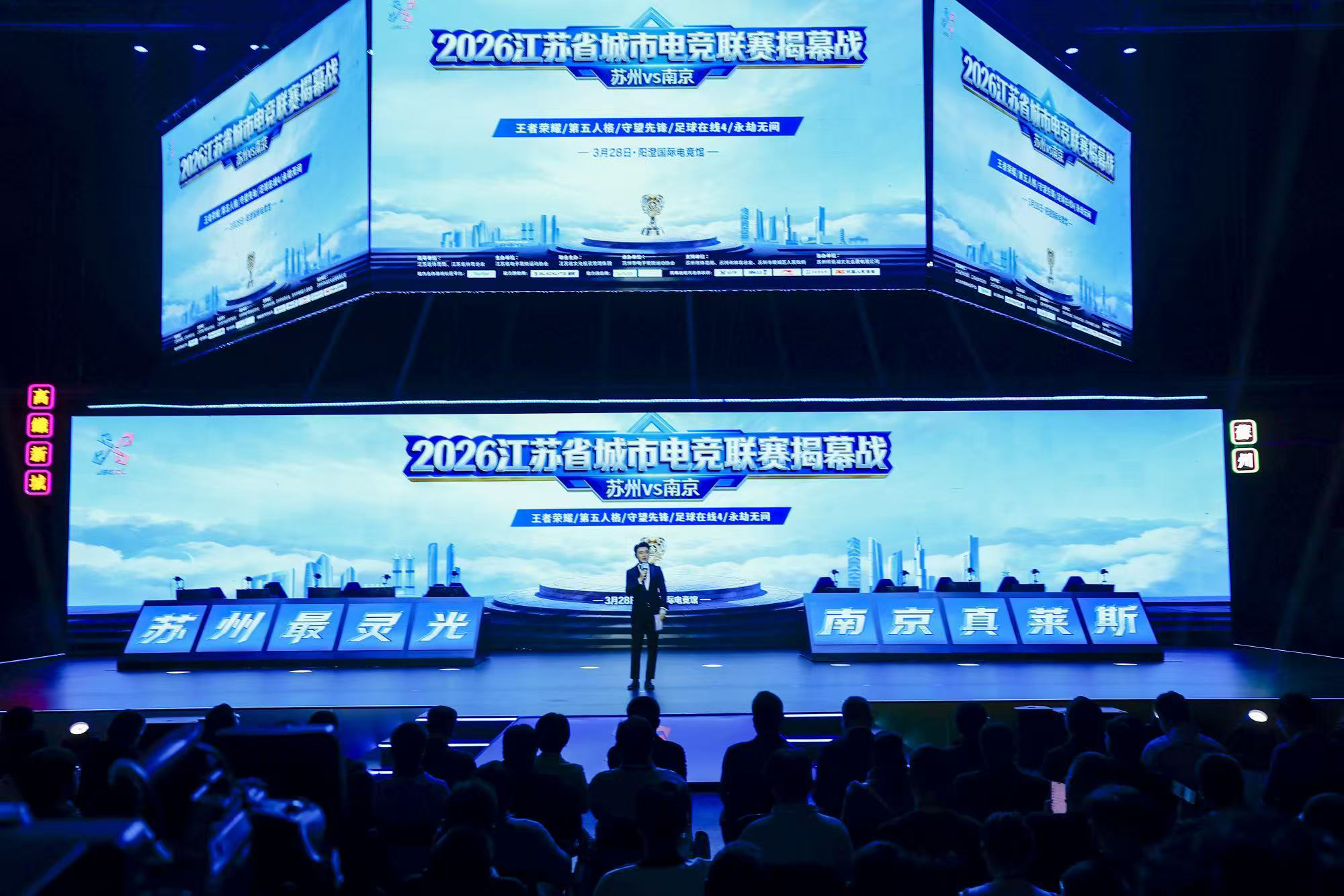 3月28日,2026江苏省城市电竞联赛(电竞“苏超”)揭幕战在苏州阳澄国际电竞馆正式打响,数字竞技的激情与城市文化的魅力在此碰撞交融。本次赛事由江苏省体育局、江苏省体育总会指导,江苏省电子竞技运动协会、江苏省文化投资管理集团联合主办,一场覆盖全省13个设区市的电竞盛宴就此拉开帷幕。