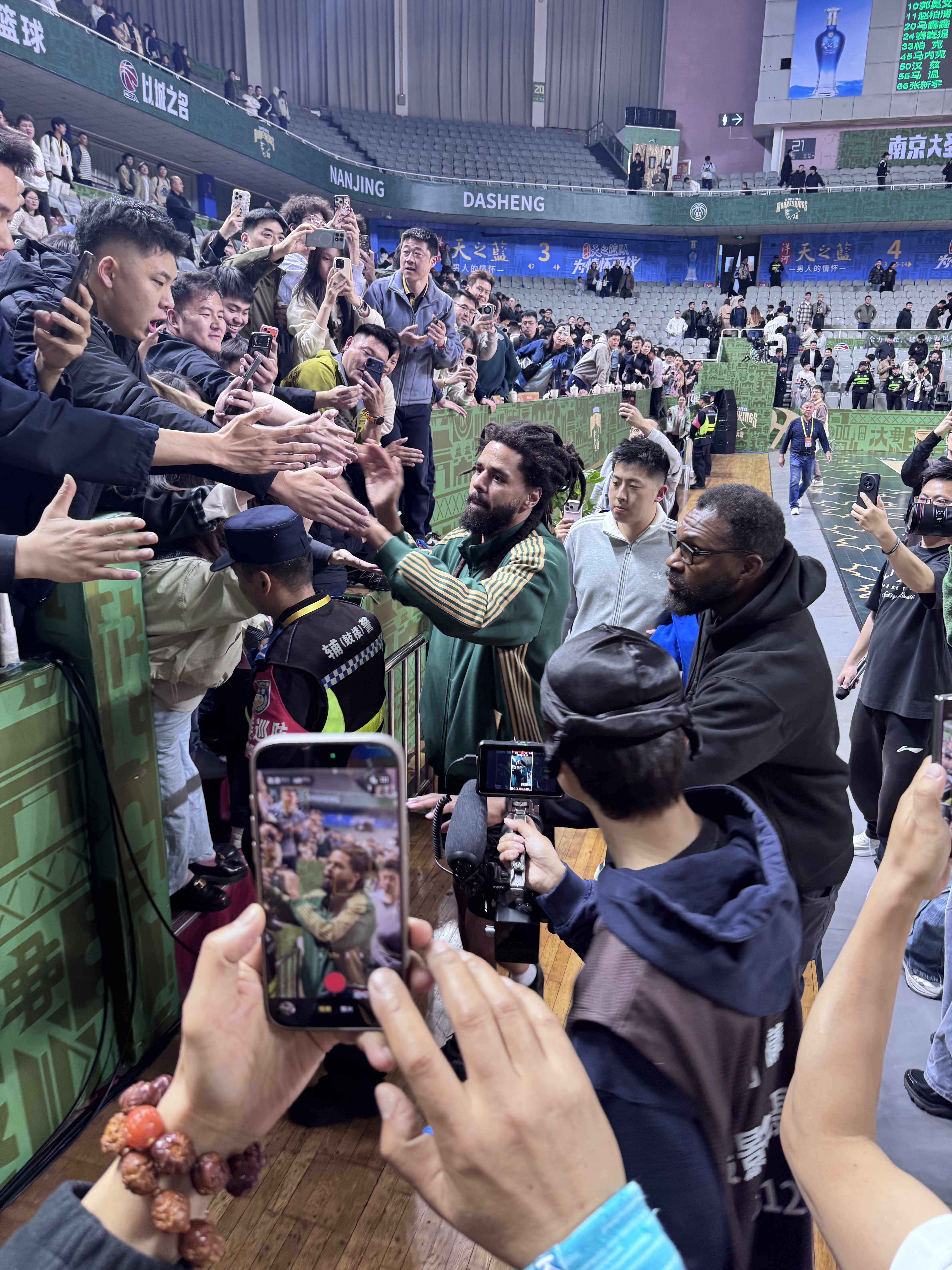赛场之外,美国顶级说唱巨星J.Cole的现身,让五台山体育馆变身跨界狂欢的舞台。因注册手续尚未完成,J.Cole本场继续无缘登场,只能身着同曦队服在场边观战,为球队加油助威。赛后,他也参与到了球队绕场一圈感谢球迷的环节当中。