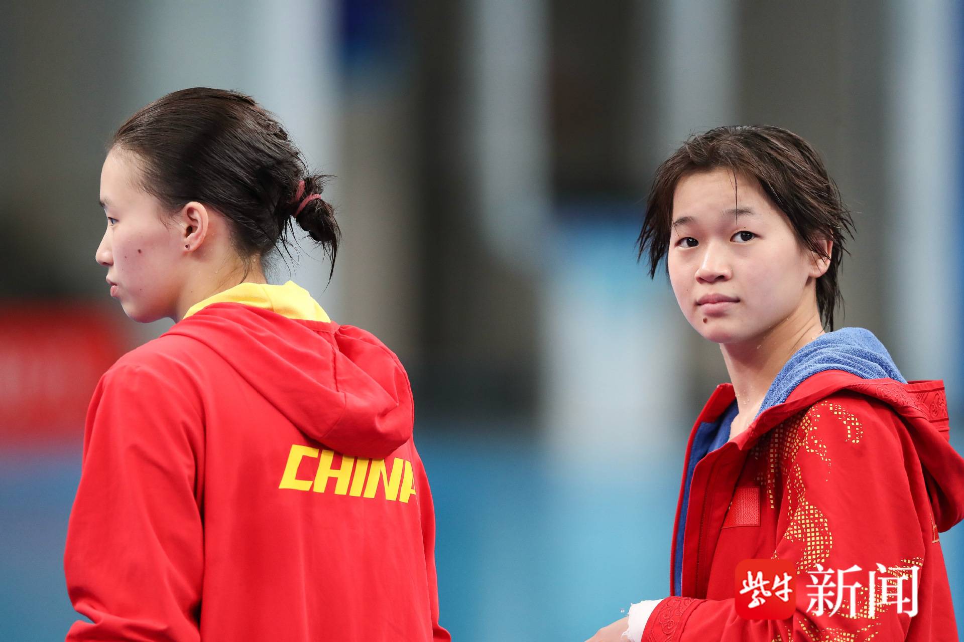 陈芋汐(左)和全红婵在 比赛前