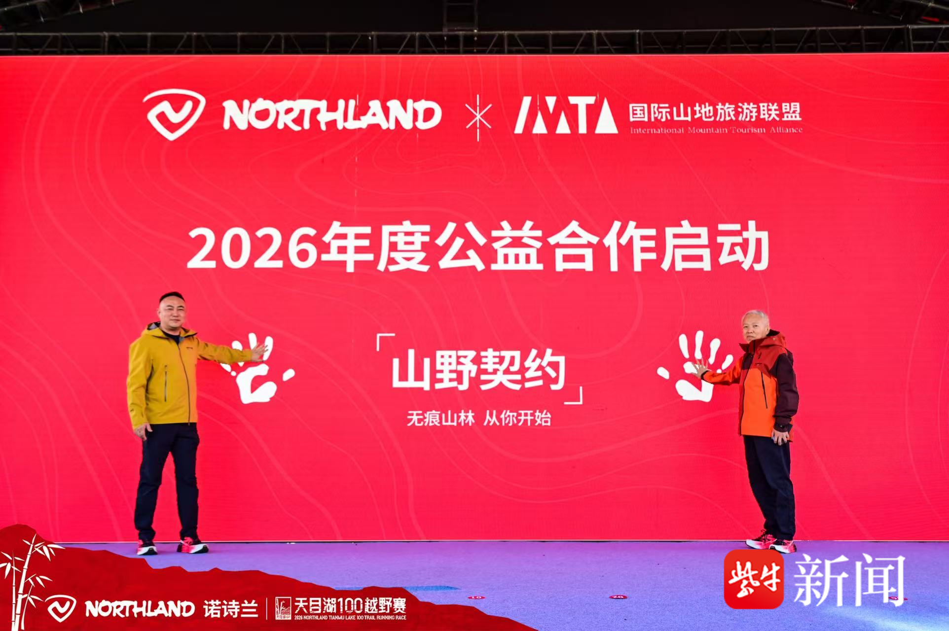 赛事现场,双方共同推出「山野契约」公益倡议,号召全体参与者文明参赛、呵护自然,以实际行动践行生态责任。国际山地旅游联盟副主席刘照惠先生出席公益合作启动仪式,与边城体育副总裁王永铭先生共同发起公益承诺。