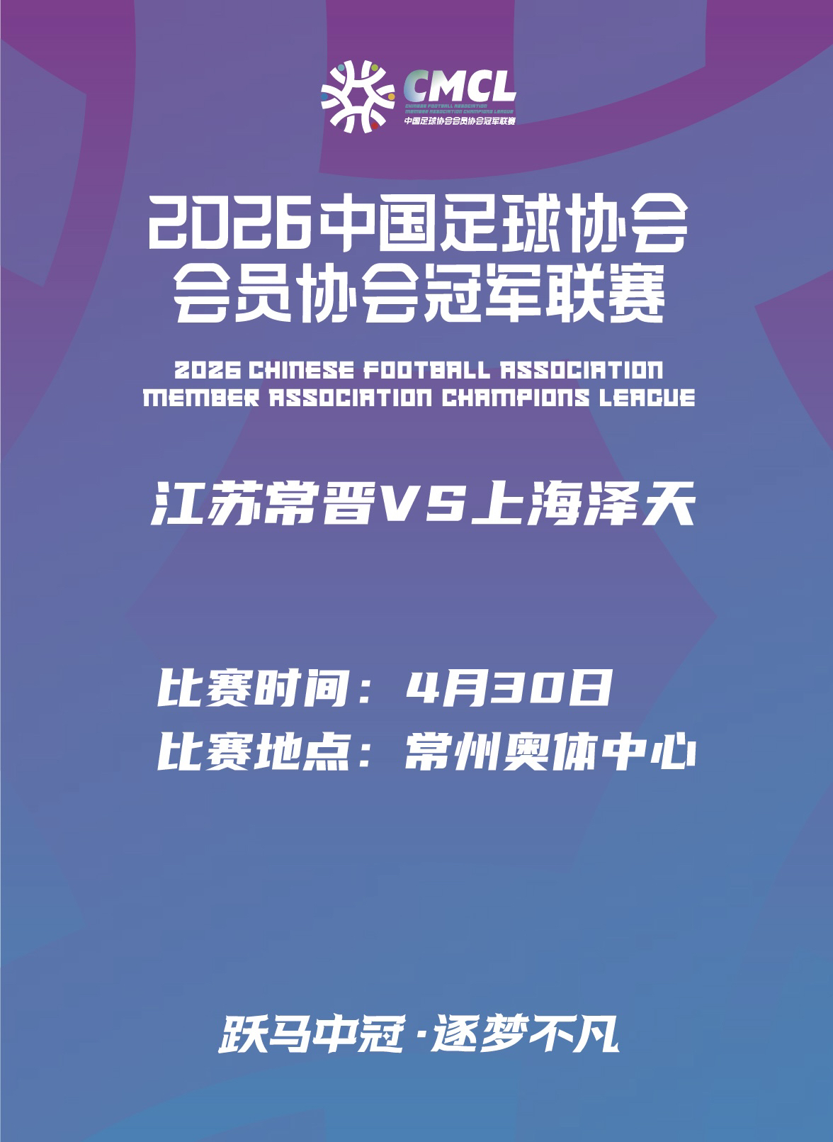 2026中国足球协会会员协会冠军联赛常州赛区迎来关键对决,为满足球迷观赛需求、提升现场体验,经组委会协调,大区排位赛最后一轮焦点战——江苏常晋对阵上海泽天的比赛,正式移师常州奥林匹克体育中心进行。