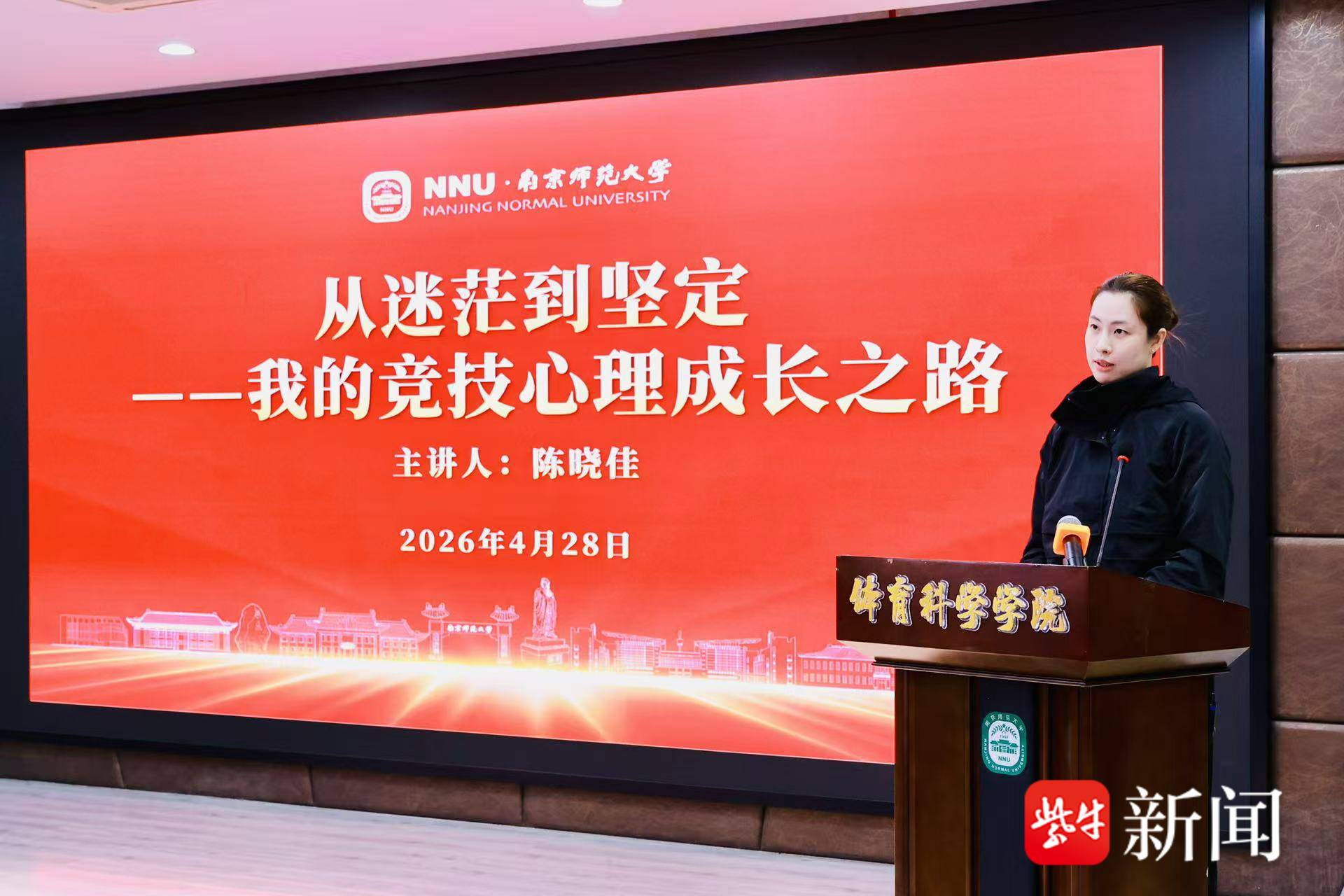 拓展联学实践,传递榜样力量。4月28日,全新启航的“竞技仙锋”青年理论学习小组打破体育系统内部交流边界,走进南京师范大学,开展“聆听冠军初心志 躬行赛场求真知”主题联学活动,实现了体育青年与高校学子的思想交融、精神共鸣。活动中,世界冠军王嘉男结合自身运动生涯的起伏与坚守,分享从低谷蛰伏到巅峰绽放的奋斗历程,勉励青年专注当下、超越自我、珍惜机遇;江苏女篮主教练陈晓佳以“从迷茫到坚定”为主线,讲述自己“三进三出”国家队的心理成长与转型执教的心路历程,传授专注过程、构建支持系统、用行动打败焦虑的心理韧性法则。现场互动答疑真诚热烈,赛场实战指导干货满满,既实现了“理论宣讲”与“实践躬行”的深度融合,又让体育精神与青春力量双向传递,充分展现了江苏体育青年一代的昂扬风貌与榜样力量。