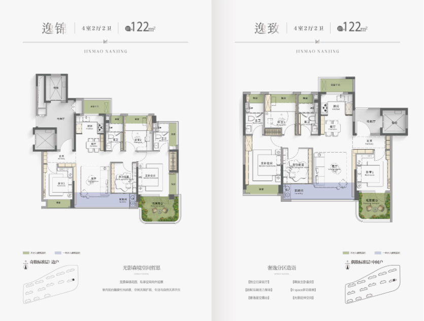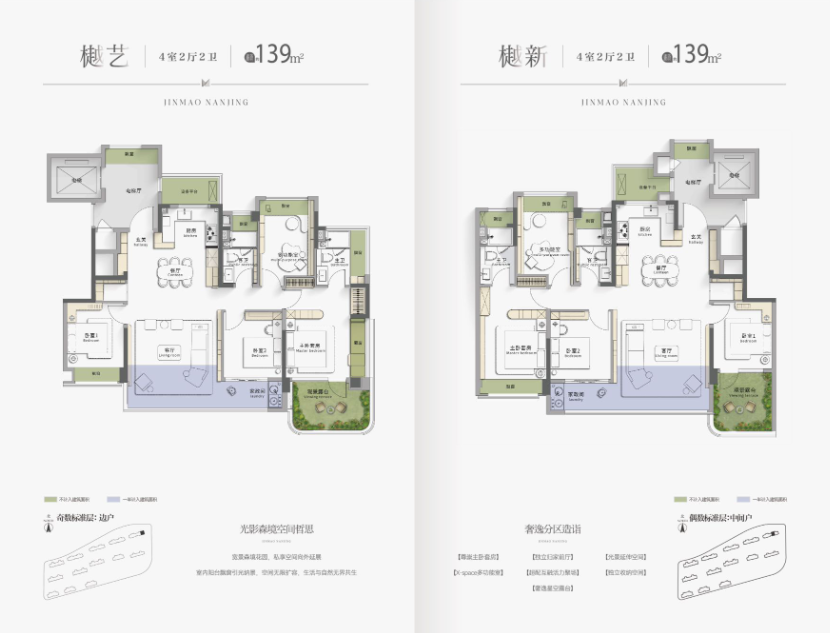 洞察市场精准脉搏,打造稀缺小面积四代奢宅。在产品层面,项目精准切入改善型家庭的终极需求,以建面约105㎡、122㎡、139㎡的户型规划,在江宁核心区打造了唯一的小面积四代奢宅,在产品类型上具备了绝对的稀缺性与不可替代性。