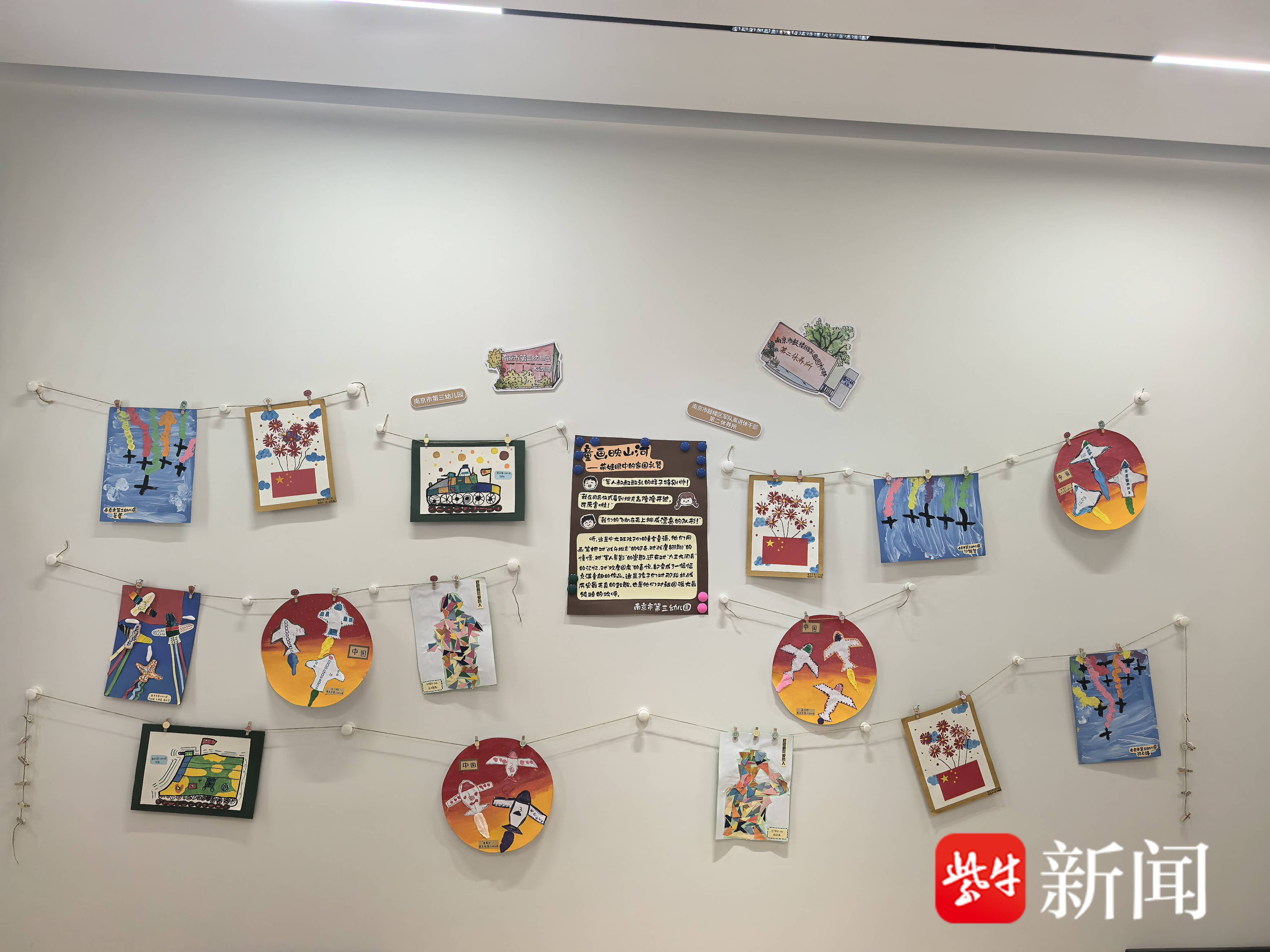 展厅内,三十余幅来自南京市第三幼儿园小朋友的书画作品错落陈列,稚嫩的笔触下既有 “抗战英雄打敌人” 的生动场景,也有 “五星红旗映山河” 的美好图景,还有 “我爱祖国大好河山” 的直白告白。红色、黄色为主的画面色彩明快,虽笔触稚嫩却饱含真挚情感。今年89岁的军休干部李保美看着一幅《英雄守山河》的画作,不禁回忆起自己的军旅岁月:“这画里的小战士眼神真坚定,就像当年我们的模样。看到孩子们用画笔铭记历史、热爱祖国,我心里特别欣慰。”
