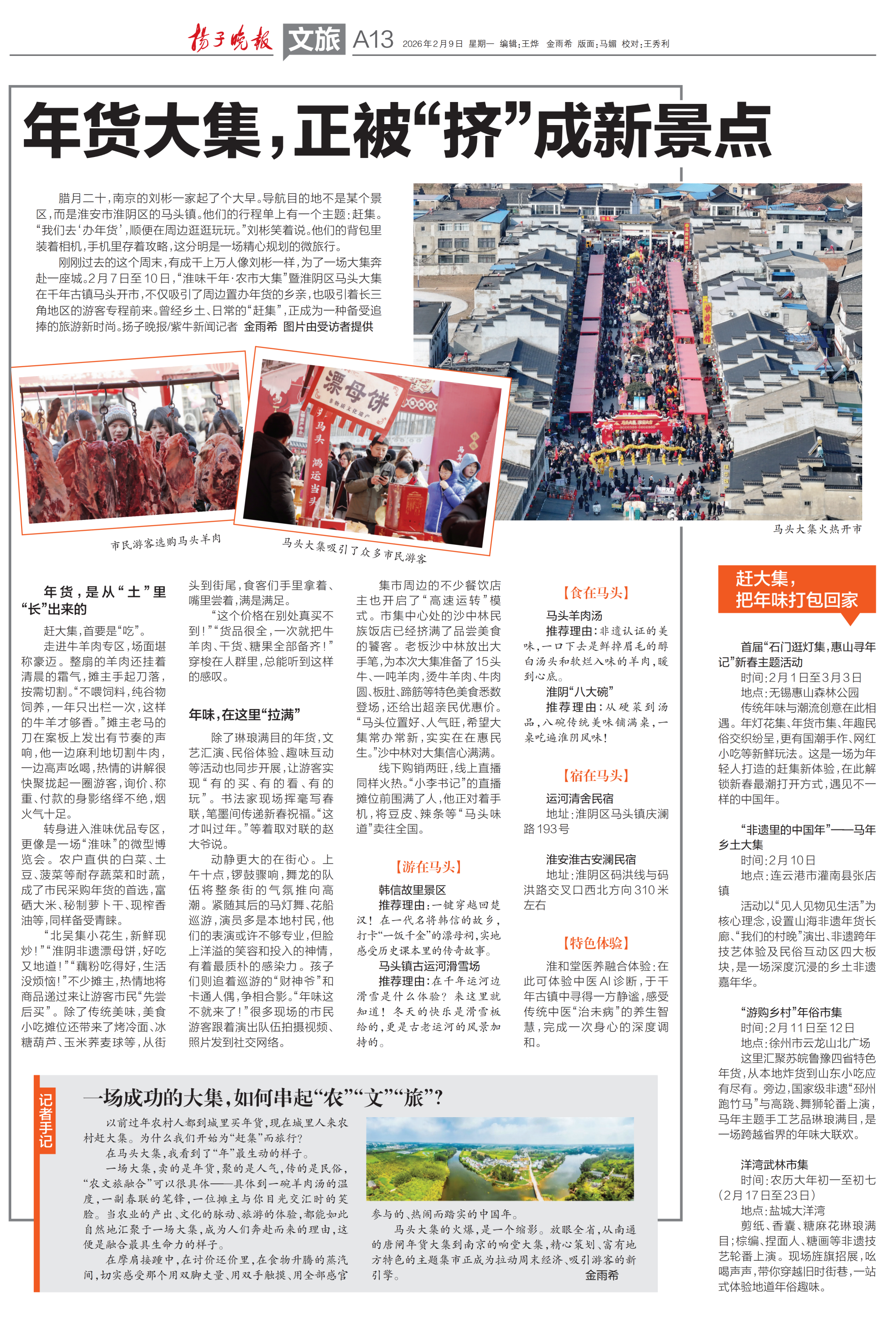 刚刚过去的这个周末,有成千上万人像刘彬一样,为了一场大集奔赴一座城。2月7日至10日,“淮味千年·农市大集”暨淮阴区马头大集在千年古镇马头开市,不仅吸引了周边置办年货的乡亲,也吸引着长三角地区的游客专程前来。曾经乡土、日常的“赶集”,正成为一种备受追捧的旅游新时尚。