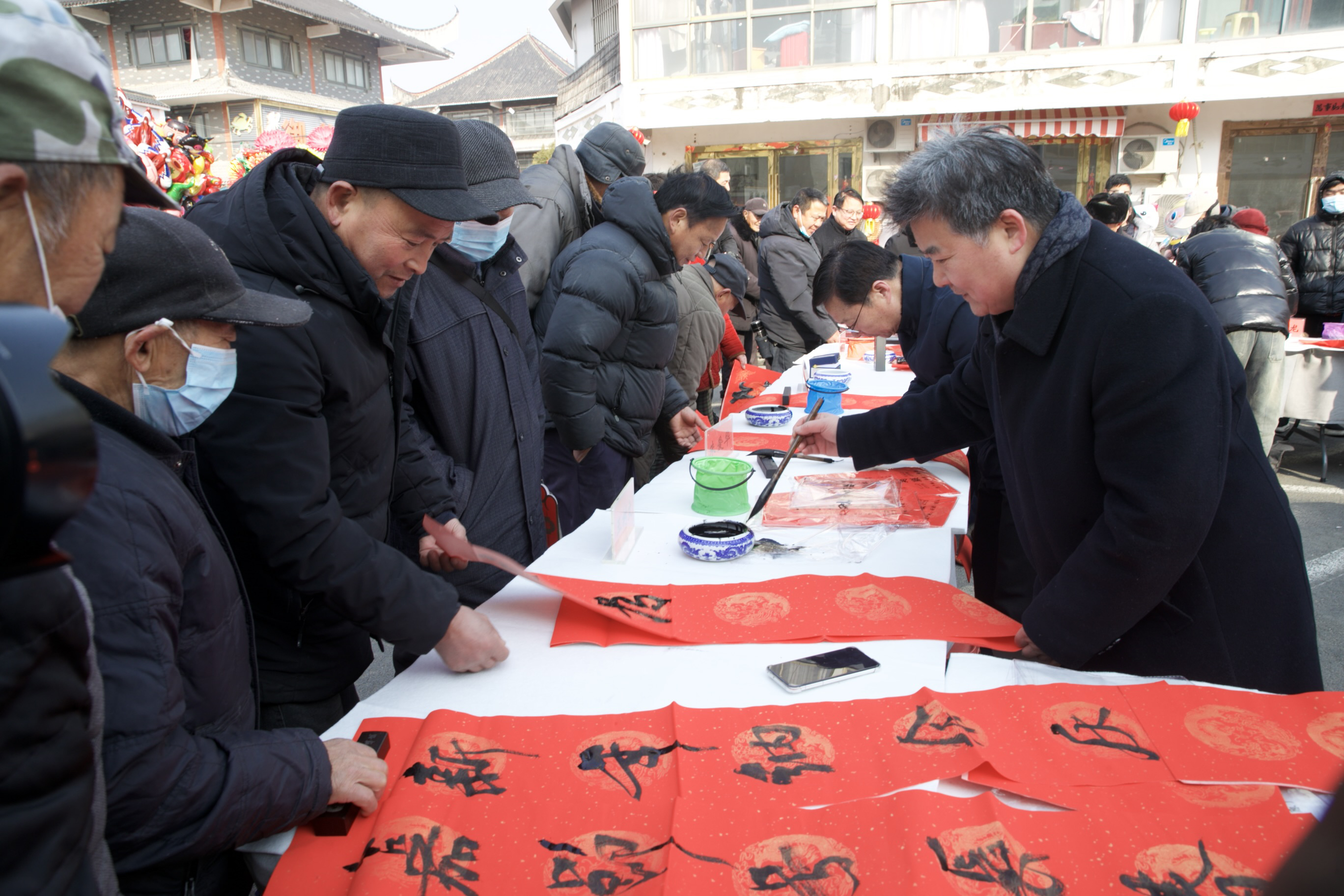 除了琳琅满目的年货,文艺汇演、民俗体验、趣味互动等活动也同步开展,让游客实现“有的买、有的看、有的玩”。书法家现场挥毫写春联,笔墨间传递新春祝福。“这才叫过年。”等着取对联的赵大爷说。