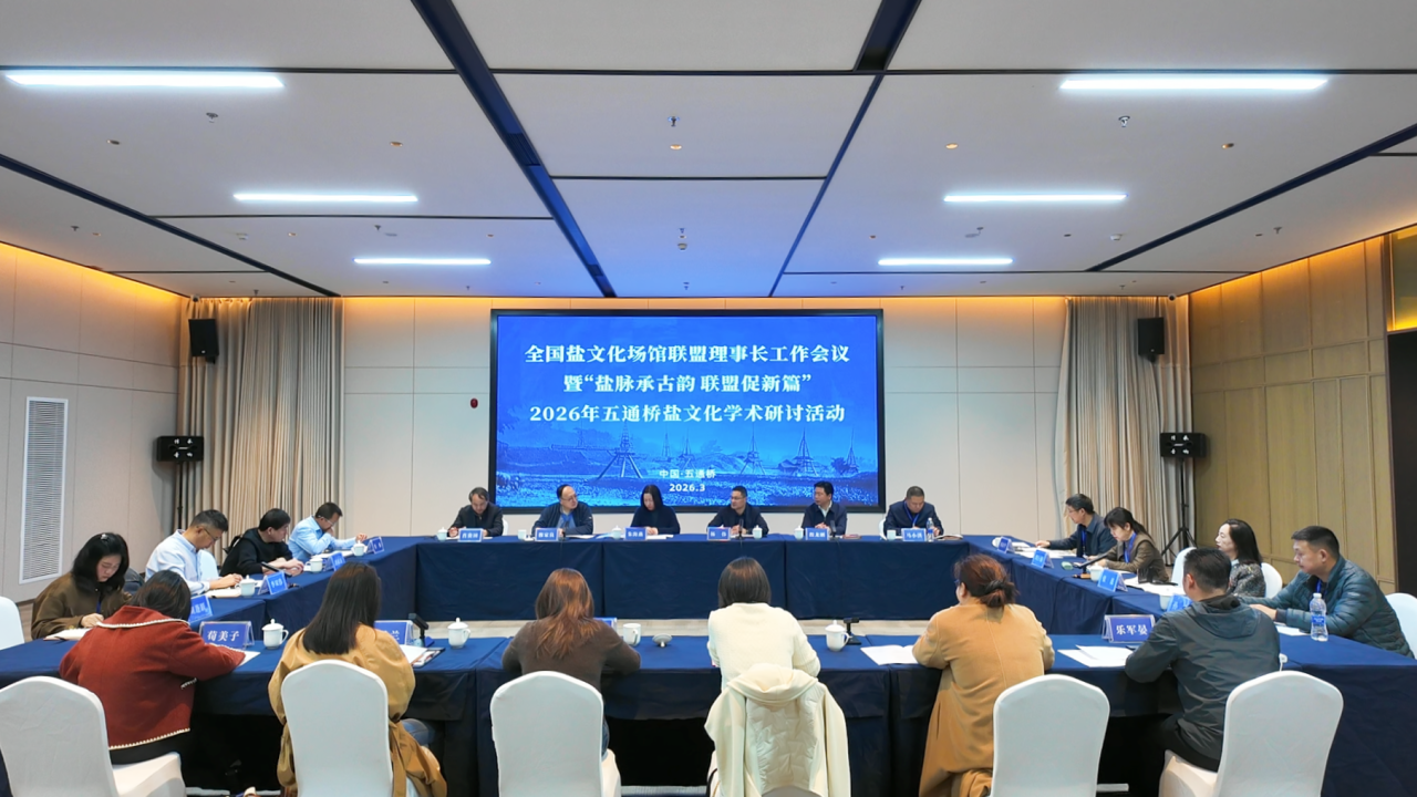 3月24日,2026年全国盐文化场馆联盟理事长会议在四川乐山召开。本次会议由全国盐文化场馆联盟、中国海盐博物馆主办,乐山市五通桥区文化广播电视体育和旅游局承办。来自理事长单位代表、联盟秘书处负责人等二十余人齐聚一堂,共商盐文化传承发展大计。会议由全国盐文化场馆联盟副理事长兼秘书长、淮盐文化博物馆馆长穆家良主持。