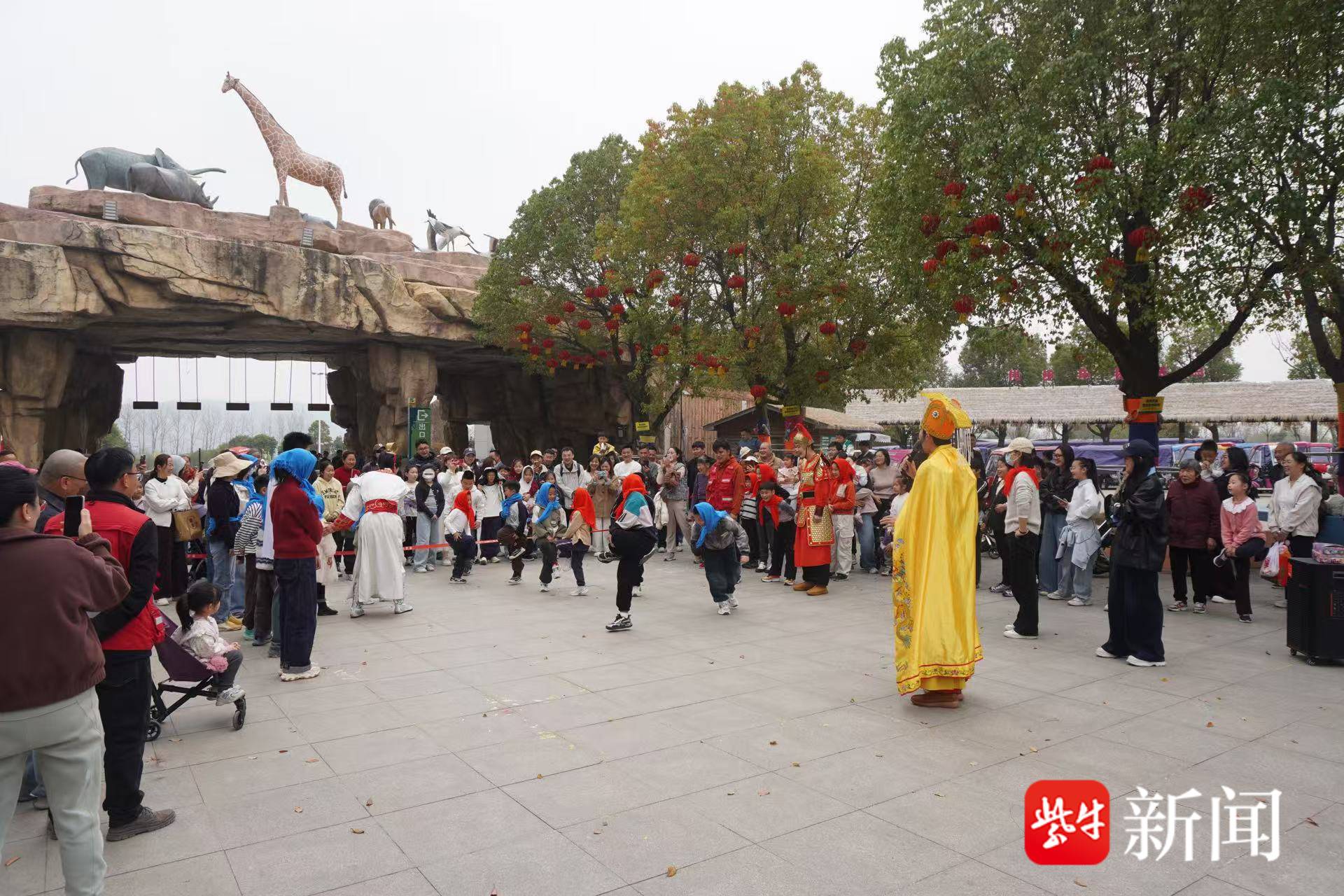 上午9点,南京金牛湖野生动物王国刚刚开园,步行区入口处就排起了长队。来自镇江的刘长远带着上二年级的儿子,特意把春假第一站选在了这里,园区里随处可见的西游元素已经让孩子兴奋不已——花果山、水帘洞、高老庄……一个个经典场景在园区内实景还原。
