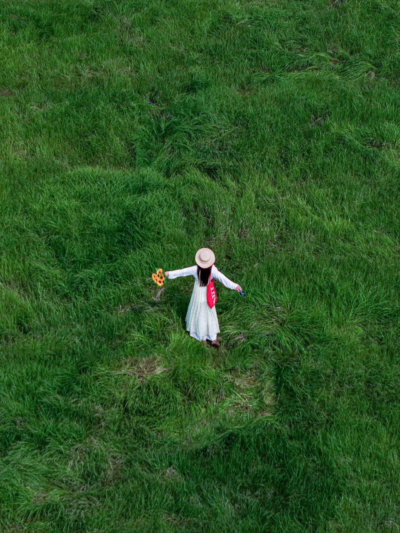 “像童话一样治愈,值得来!”刚在周末结伴前来打卡的李女士感叹。眼前草海的辽阔与夕阳的壮美,超乎她的想象。漫步在密实的草浪间,青草味扑面而来,每一阵风过,都勾勒出草海不同的形状,时而温柔起伏,时而奔涌如浪。站在蓝天、栈桥下,情绪仿佛都跟着风的节奏舒缓起来。