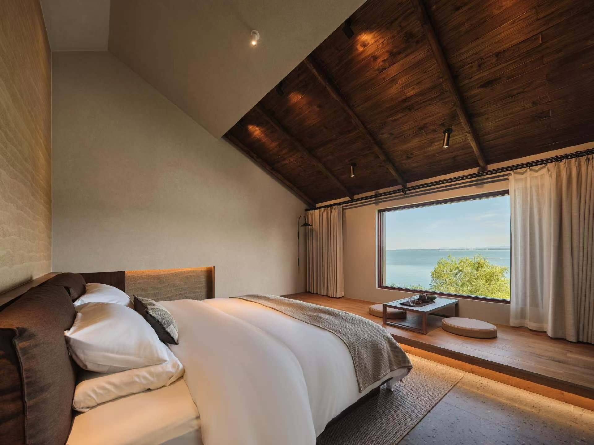 南京臼这里·湖畔民宿:依湖而建,有临湖观景房、花园庭院房、LOFT亲子房、阁楼艺术房等,每一间风格各异,设有花田宴,游人可边赏粉色油菜花边用餐。