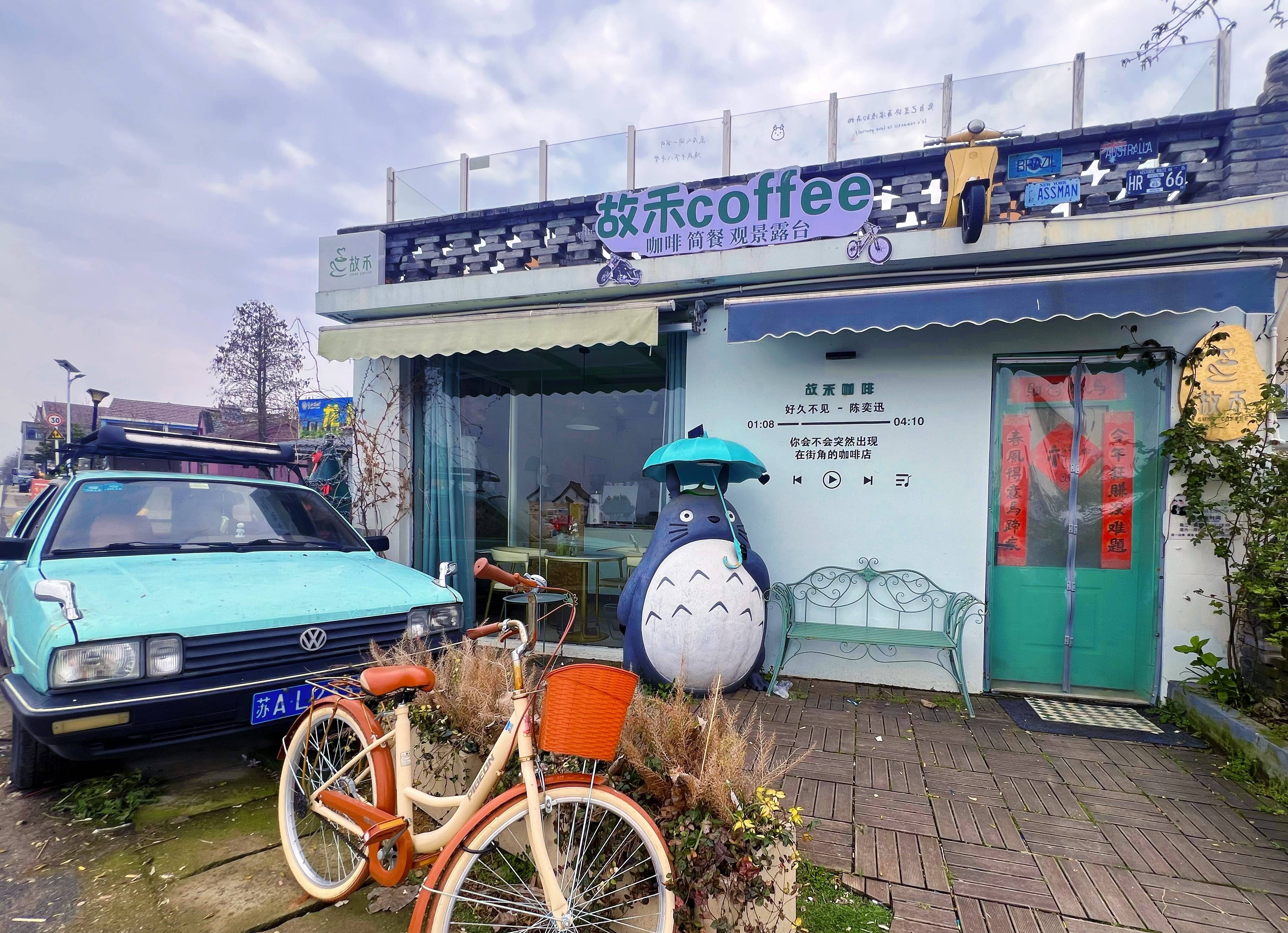 “这几年,不只南京本地人,从周边城市过来的游客逐年增多。”四年前,小何就在龙猫草海的最佳观景处,开出了这里的第一家“村咖”故禾咖啡。门口的绿色大众老爷车和橙色自行车,散发着复古气息。许多人在草海尽情奔跑后,喜欢点上一杯咖啡,坐在二楼露天座位,静静地吹风、看落日,感受慢时光。
