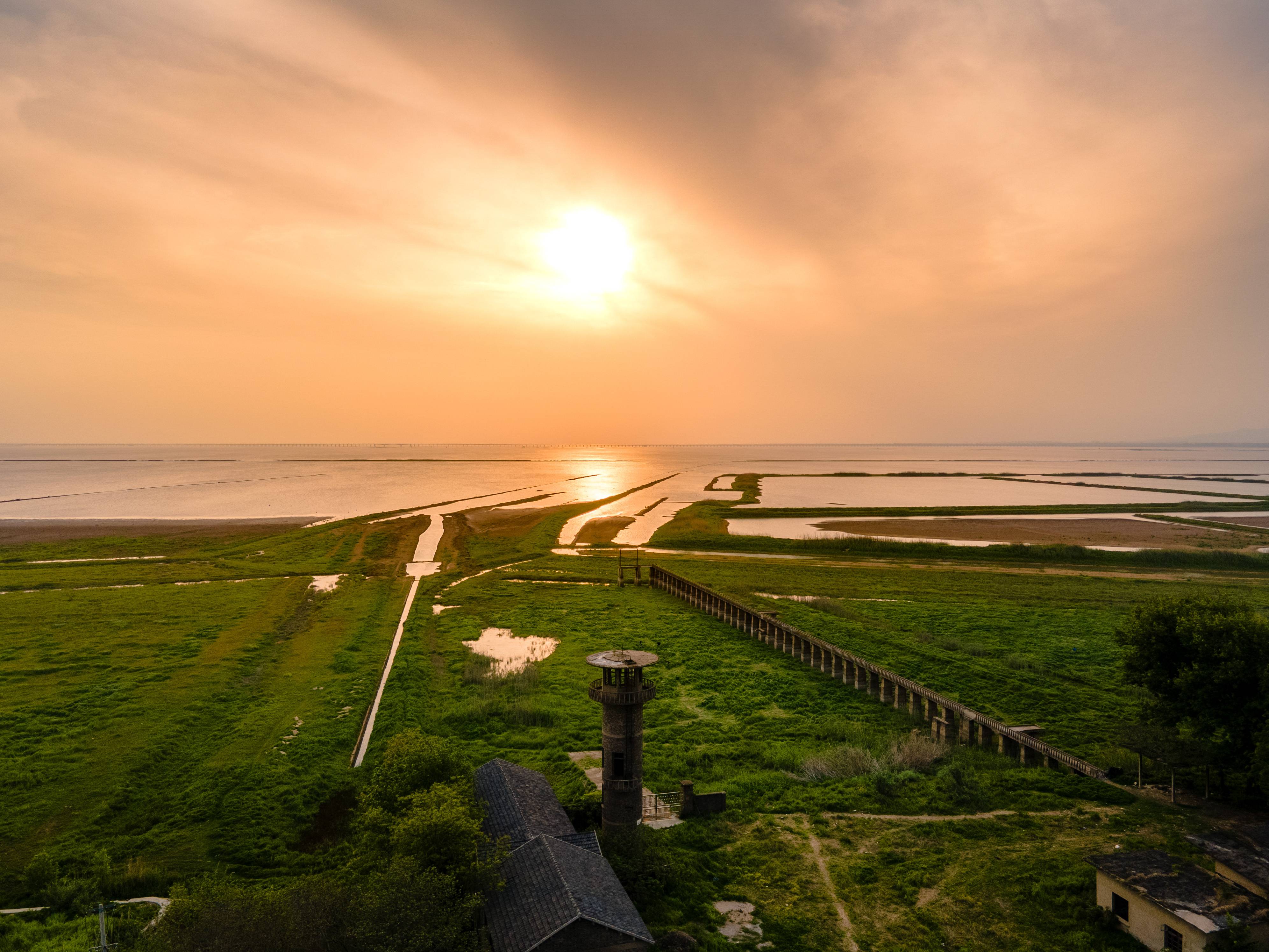 原来,离市区约80公里的溧水和凤镇,藏着一片季节限定的“龙猫草海”。当春夏枯水期,石臼湖水退去,湖底沉睡的草木便肆意生长,铺展成无边草海。风一吹过,层层绿浪翻涌,像极了动漫中的梦幻场景。每年四、五月,无数人慕名而来,只为在草海里追一阵风、等一场日落,拥抱一个惬意的午后。