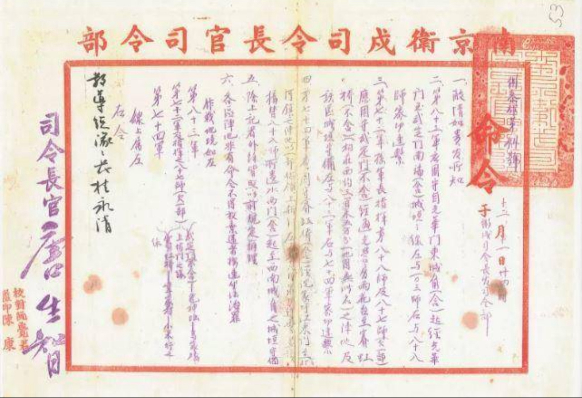 铁证|“卫参作第44号”命令:南京保卫战最后一道坚守作战命令