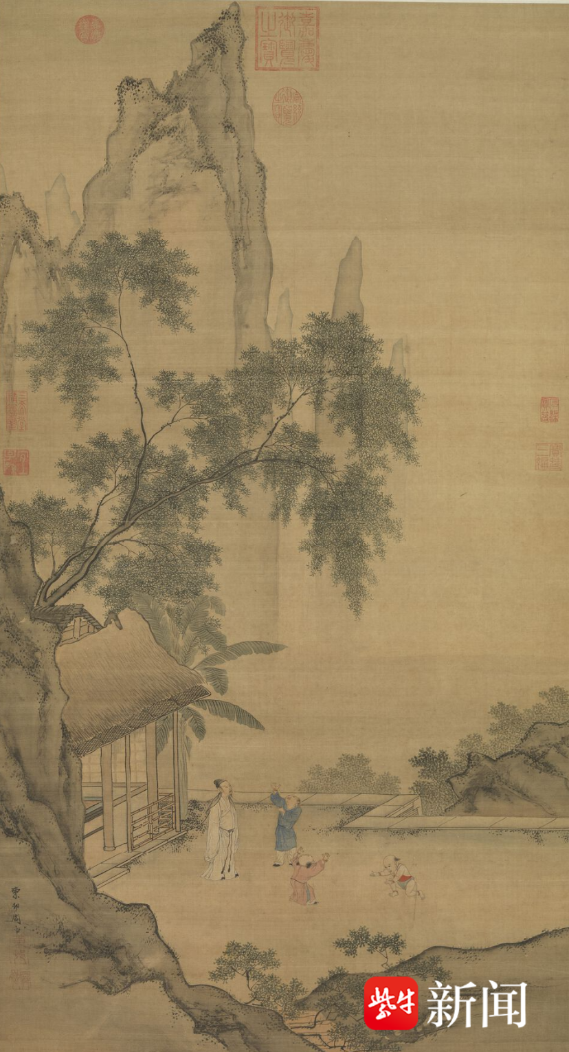 闲看儿童捉柳花句意图 明·周臣 台北故宫博物院藏