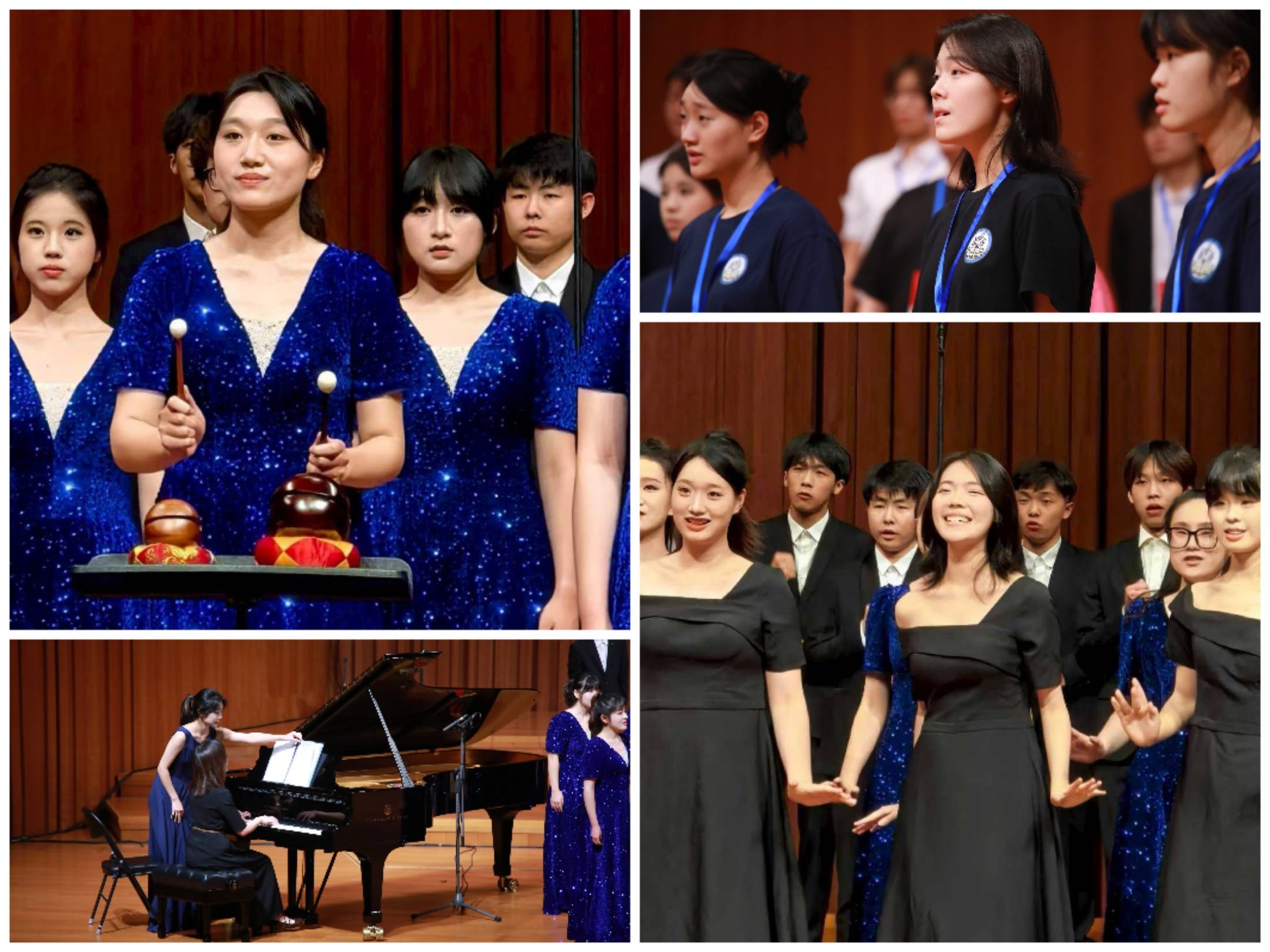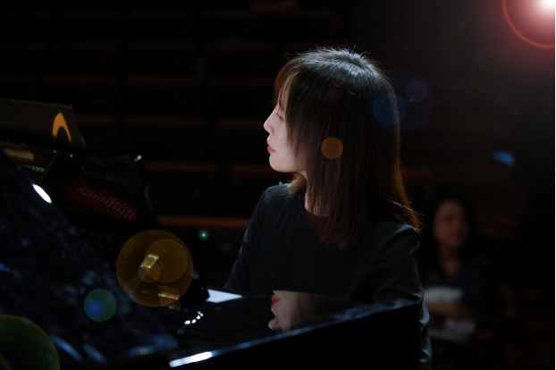 气韵悠长的《夜宿山寺》,以唐诗的古意为灵魂,旋律层层递进,既有山中夜色的静谧,又有诗人心绪的澎湃。合唱团以细腻的音色变化演绎月下山寺的空灵意境,弱声如夜色沉静,强奏似钟磬回响,配合木鱼的伴奏,声与情交织,意与境相生。值得一提的是,南师大音乐学院钢琴系副主任付镜伊副教授以她极富感染力的钢琴艺术,为整首作品注入了灵魂。她的琴声或轻如风拂松影,或凝如钟声远荡,与合唱的呼吸完美融合,使诗意的山水在音波中缓缓流动。正是这份深厚的音乐理解与舞台掌控力,让《夜宿山寺》在沈金云老师的指挥下成为当晚最具诗意与艺术深度的篇章之一。