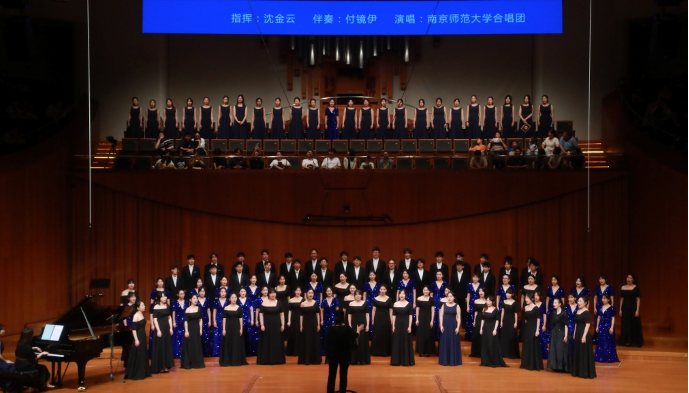 南师大音乐学院合唱团是一支青春靓丽、热情动感、活力四射的合唱劲旅。近年来,在多项合唱比赛中获得佳绩:江苏省广播电视总台合唱百团大赛第一名;2018年中国青岛国际(即墨)合唱大会金奖第一名;江苏省大学生艺术展演合唱比赛多次特等奖、紫金合唱节多次金奖以及全国大学生艺术展演一等奖等荣誉;合唱团曾成功举办过多场合唱专场音乐会,广受好评。在刚刚落下帷幕的第七届紫金合唱季合唱比赛再次荣获高校专业组第一名。